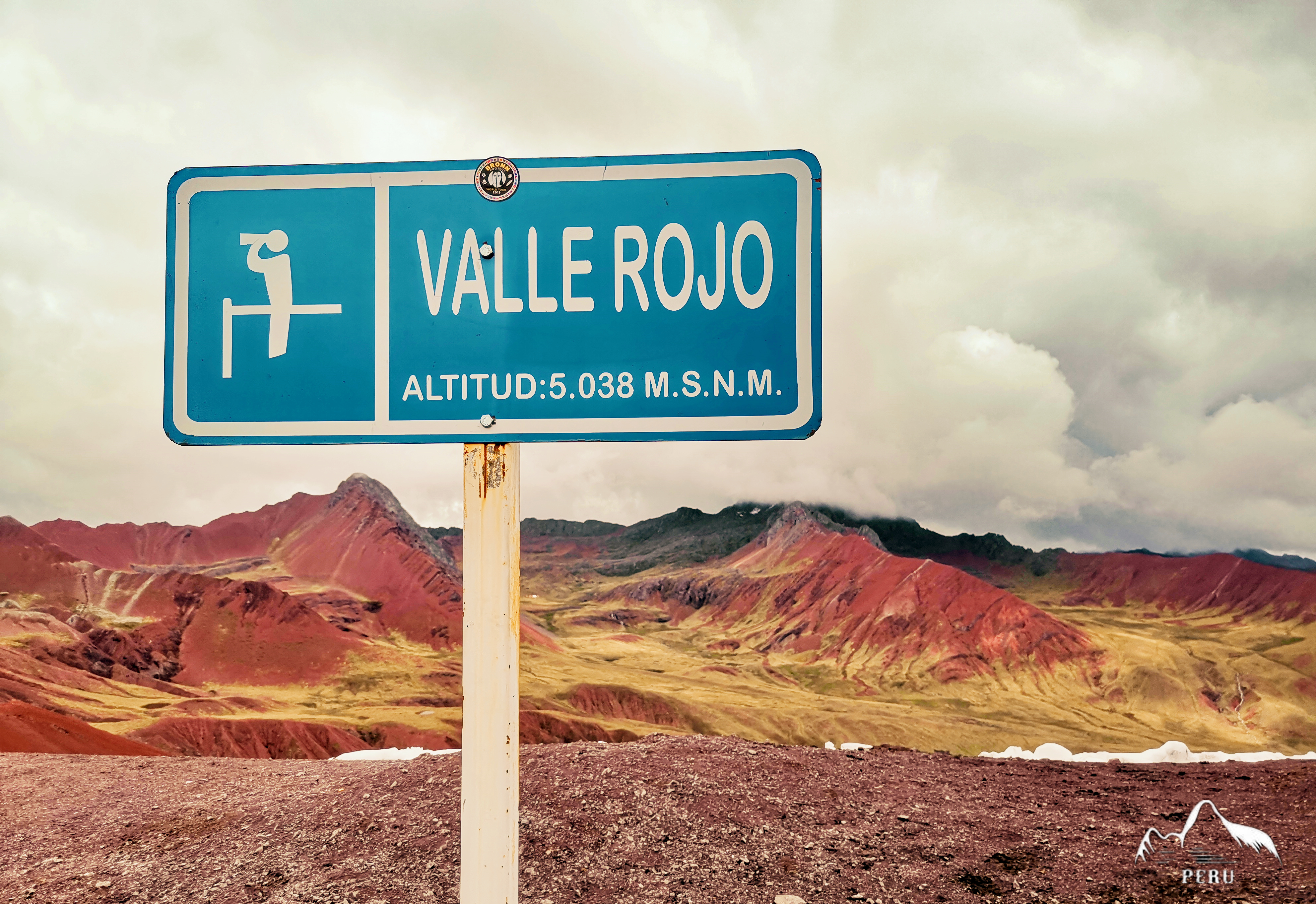在山上呆了差不多45分钟,我们决定下撤返回。我看到有零星几个旅人在向彩虹山旁边的红谷Valle Rojo进发,看了看时间,离导游规定的下撤时间还早。老刘昨天也极力推荐红谷!秉承“来都来了”的好奇心就去看看吧,那一抹红色确实很吸睛。