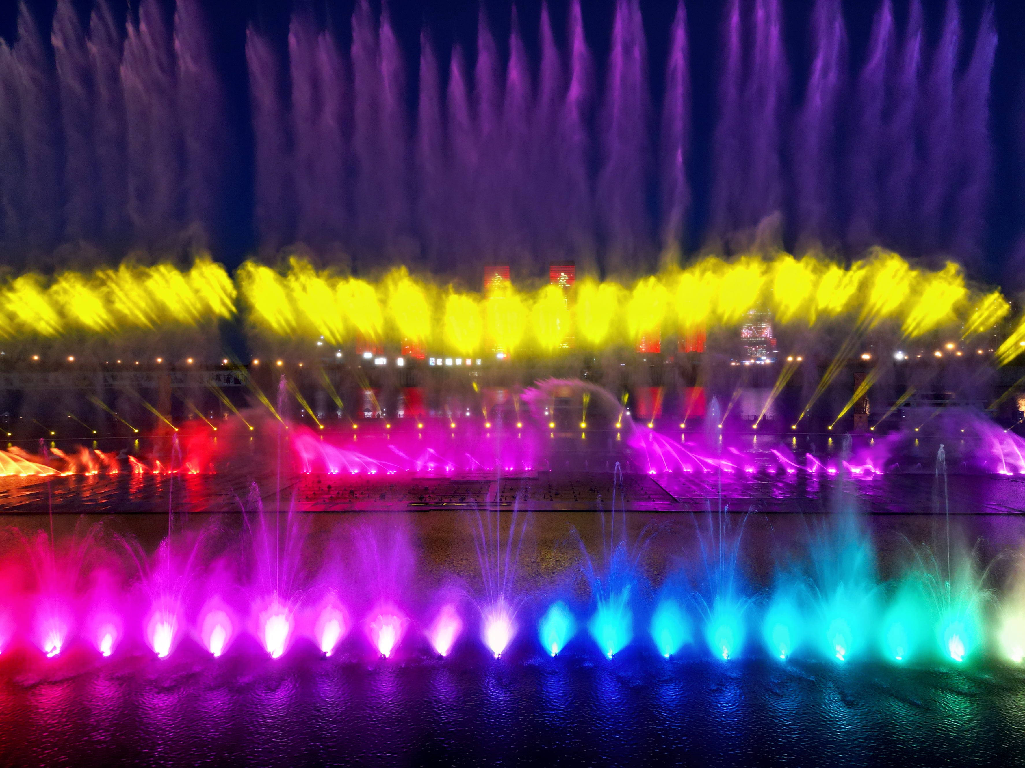 每天晚上的八点到九点,800米长的音乐喷泉定时上演。这就是打脸时刻,你没看错东西长约八百米的喷泉每天喷足一小时,而且歌曲也是从怀旧歌曲到潮流音乐,适合各个年龄层都能听懂。