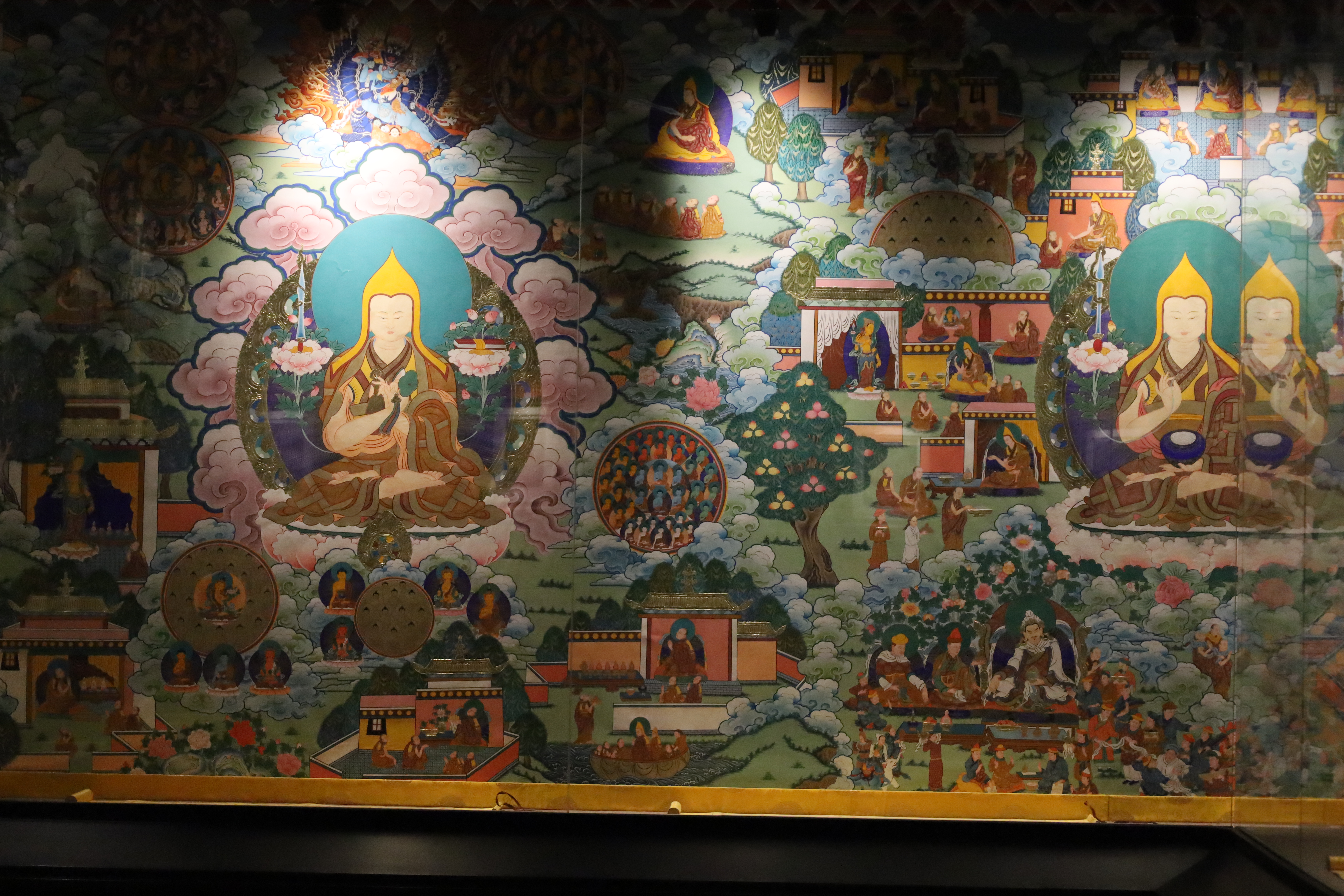 展厅中让我最喜欢的就是唐卡展厅,进去之后已经让我“哇”的一声,这幅巨型唐卡占据大半个展厅,而且我想要走近去慢慢详细的看画内容。