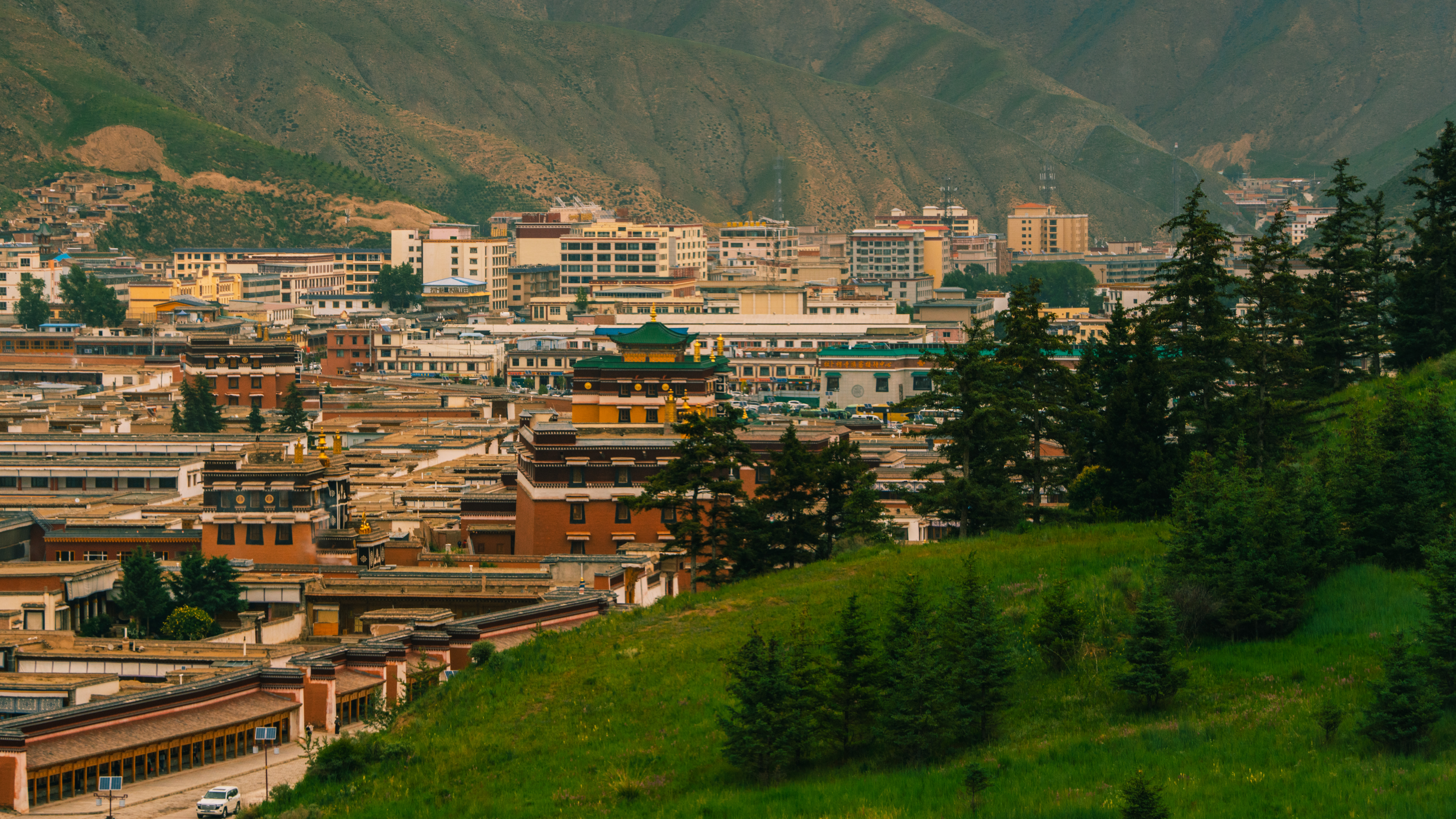 拉卜楞寺占地超过半个夏河县城,康熙五十三年(1714)建立“拉章”(即嘉木样佛官),“拉章”音变为“拉卜楞”,意为寺院最高活佛府邸。