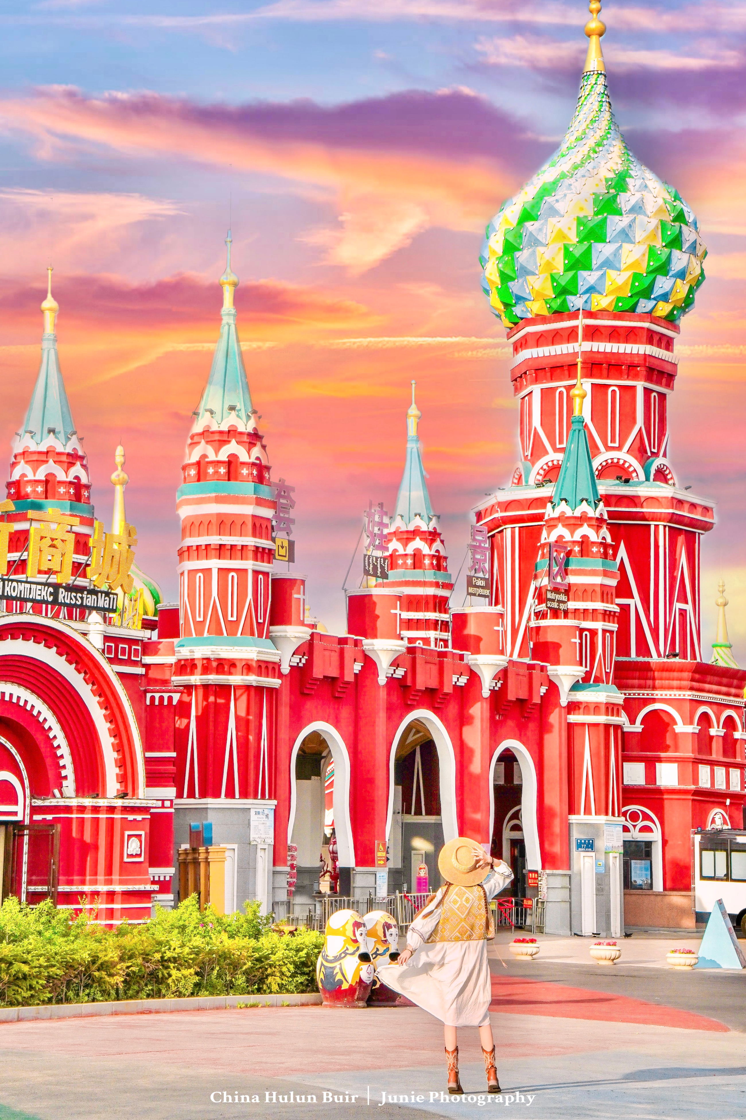 套娃广场是满洲里的地标!而套娃游乐园门票要100元/人,但我们这些建筑都是在外面广场拍照的,也足够出片!