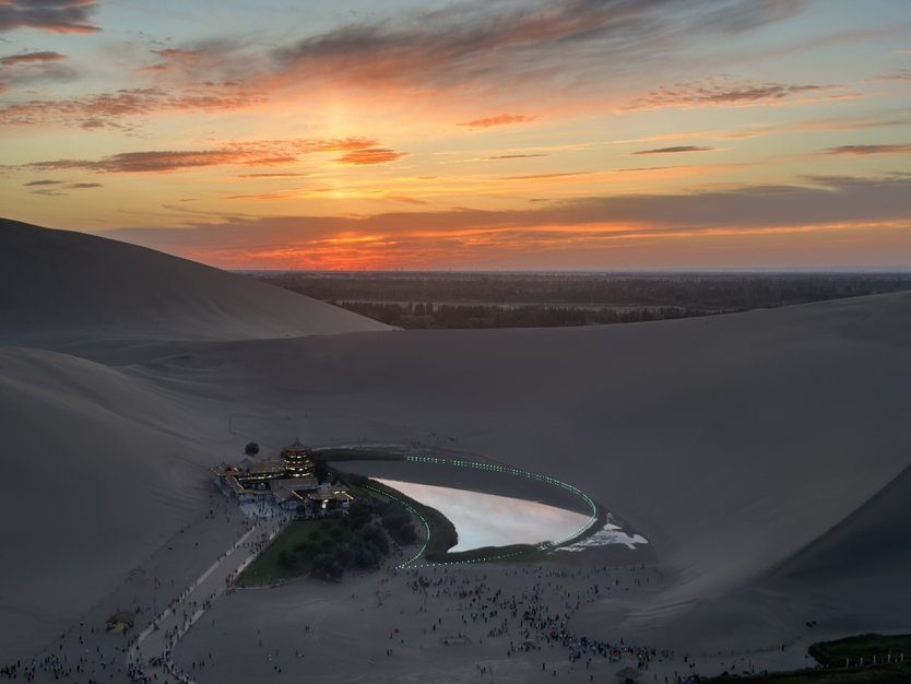 傍晚去鸣沙山月牙泉看日落,爬沙丘还是非常耗体力的,但是真的很好看。