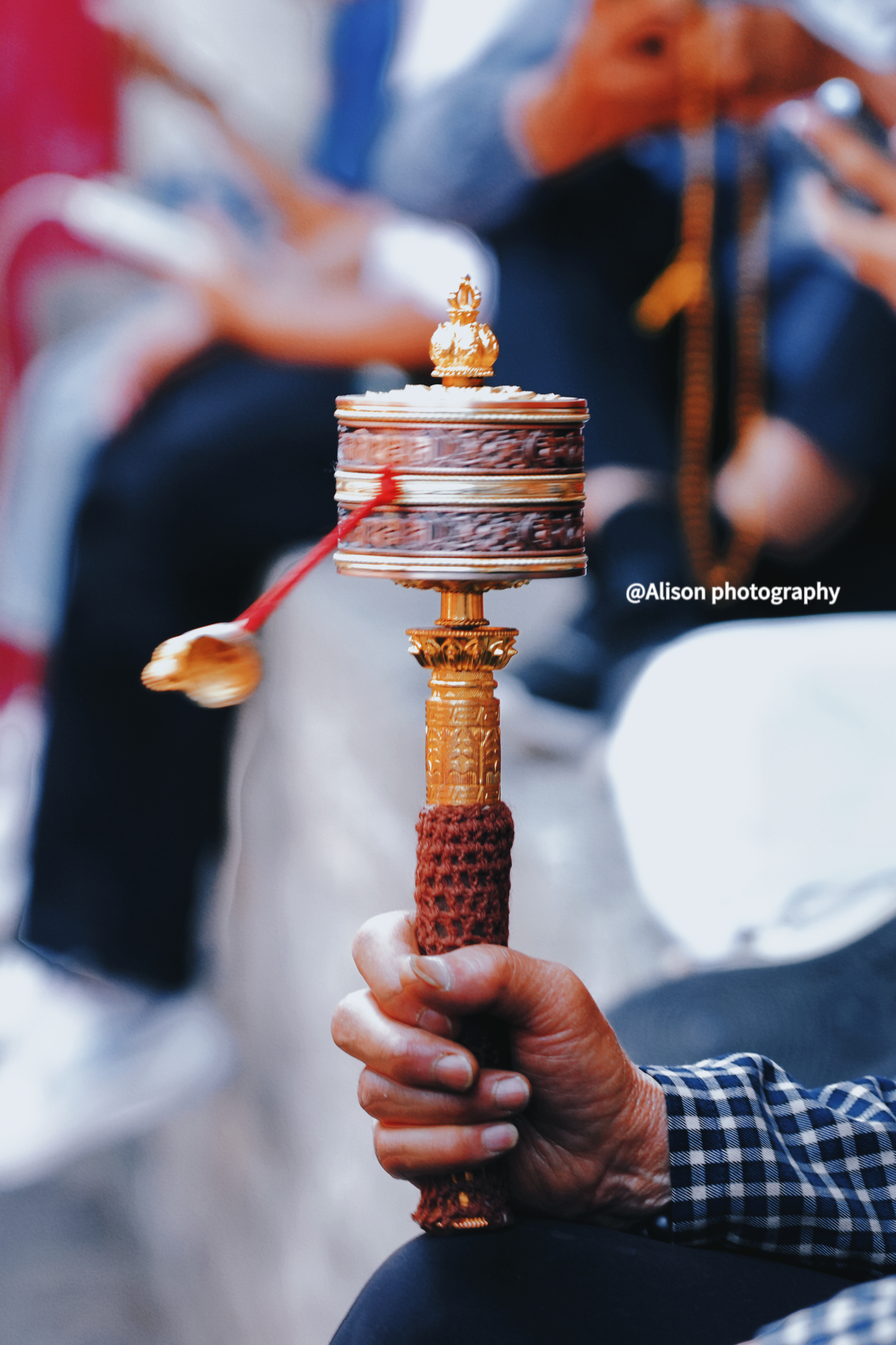 在寺里的转经筒前,大家都有序地顺时针转动着,心中默念着...