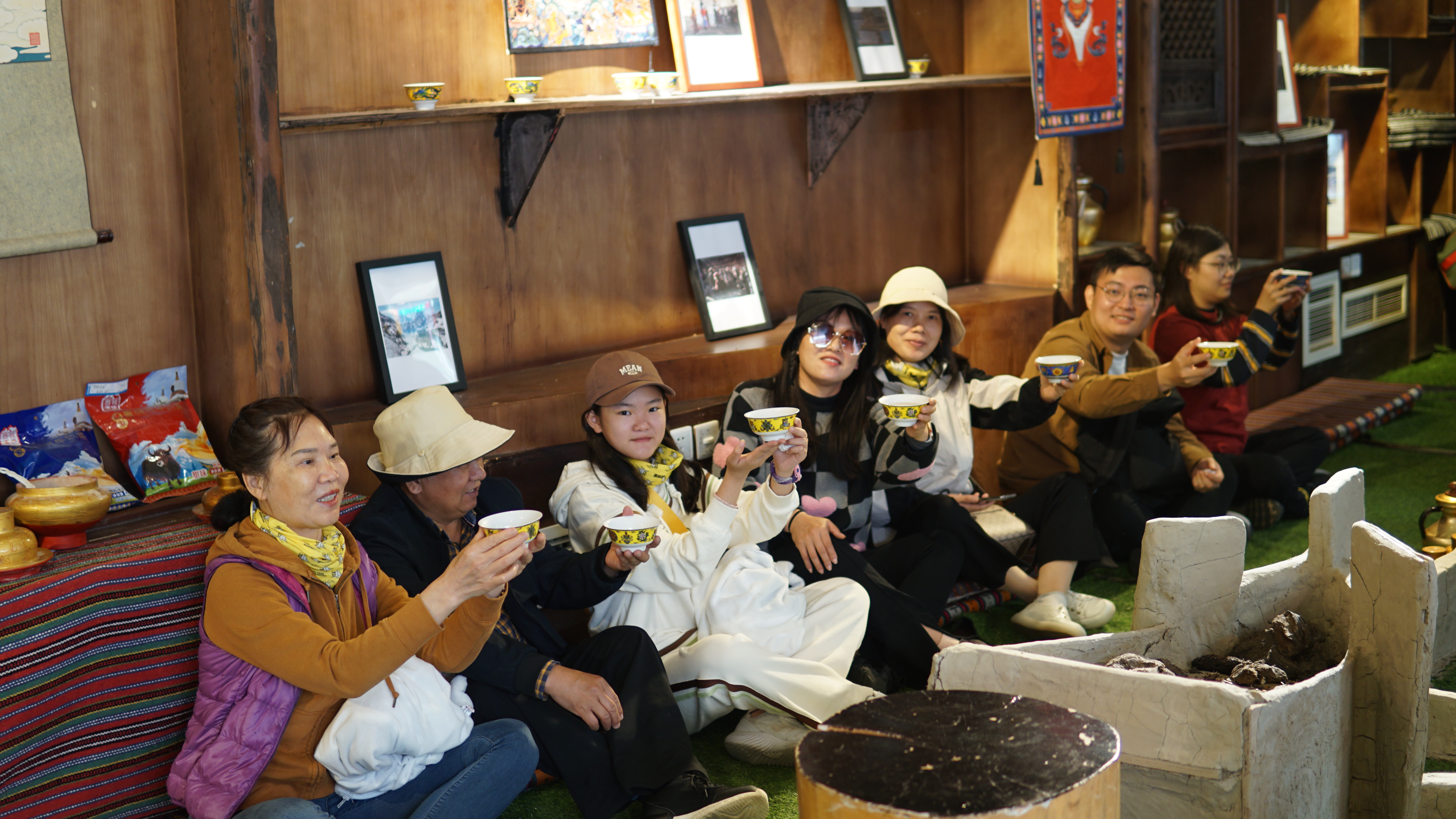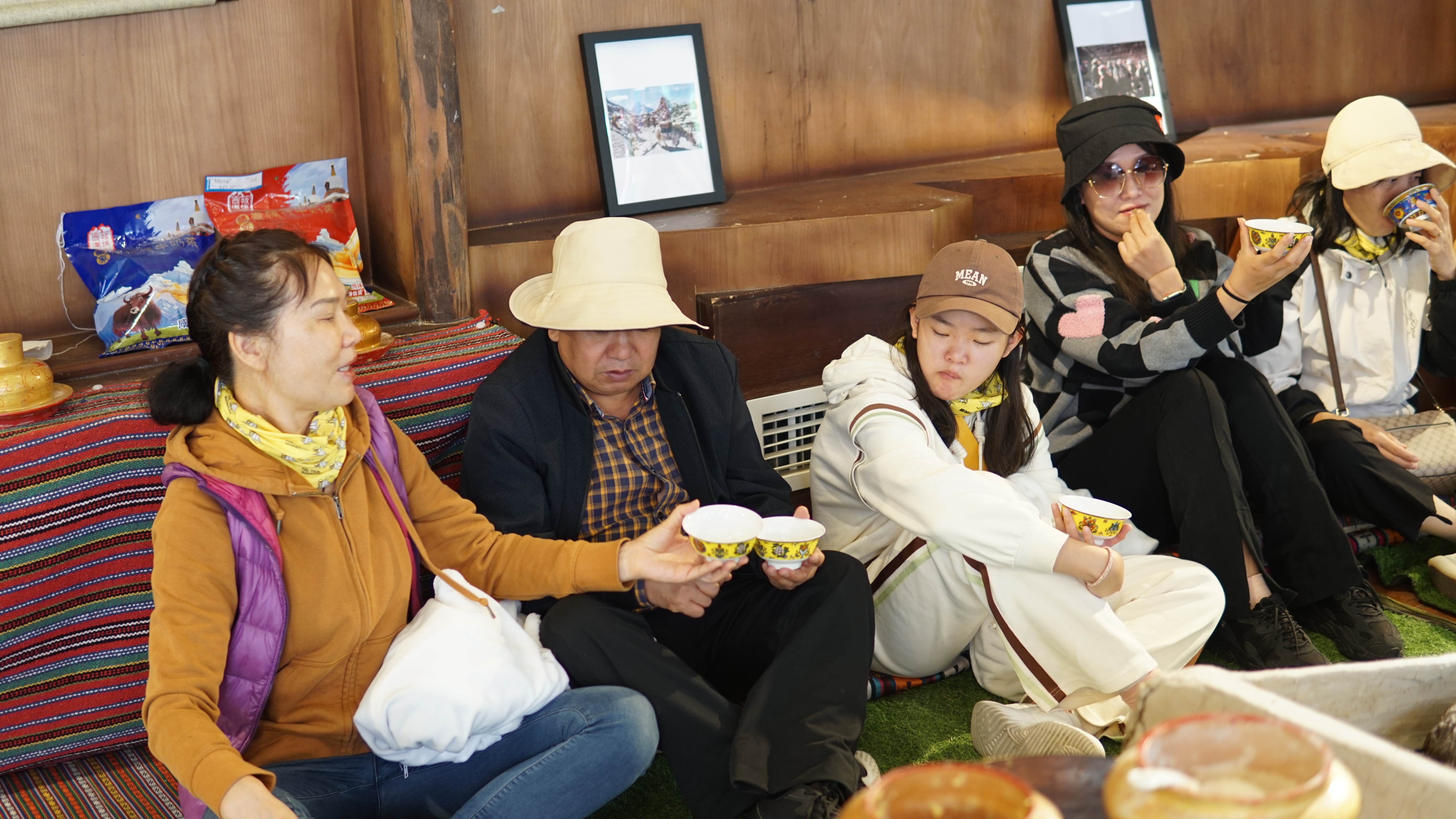 吃完早餐后我们就在当地的藏族帅哥带领下体验藏族的文化:白塔祈福、绘制唐卡、品尝糌粑、酥油茶,西部牧场九座白塔,塔内供奉着释迦摩尼佛一到九世,九座白塔象征着“生命轮回”,围转白塔,撒龙达,祈福平安顺遂。我们在蓝天白云下,辽阔草原前感受别具特色的藏族文化,感受藏族人民的热情好客。