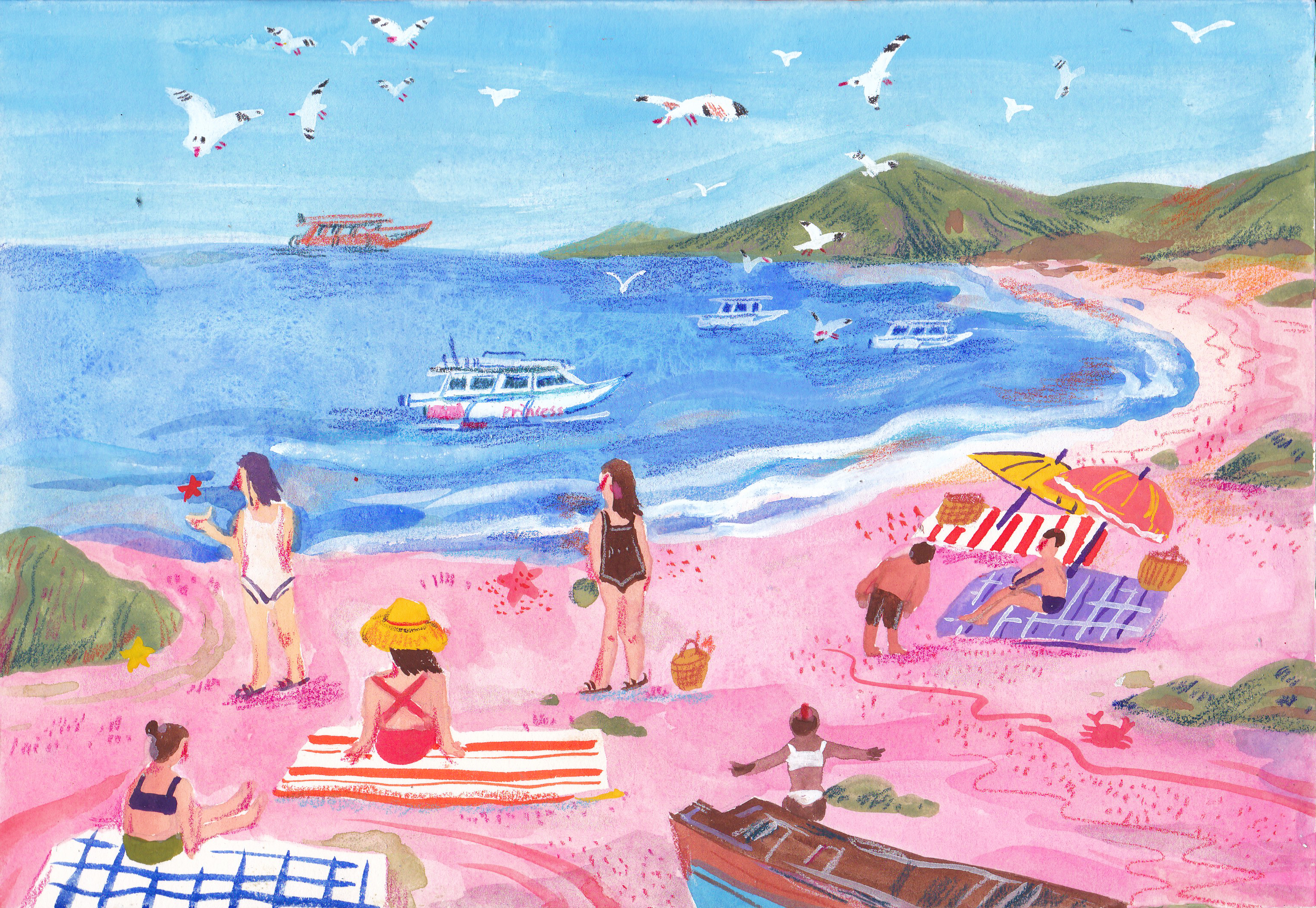 这些年手绘旅行似乎成为了我最大的标签,我也一如既往坚持着自己的热爱,这次的手绘作品颜色会比较高饱和,也是为了贴近我体验到的热浪假日,碧色透明的海,壮阔无垠的山,缤纷彩色的关于海岛的一切。