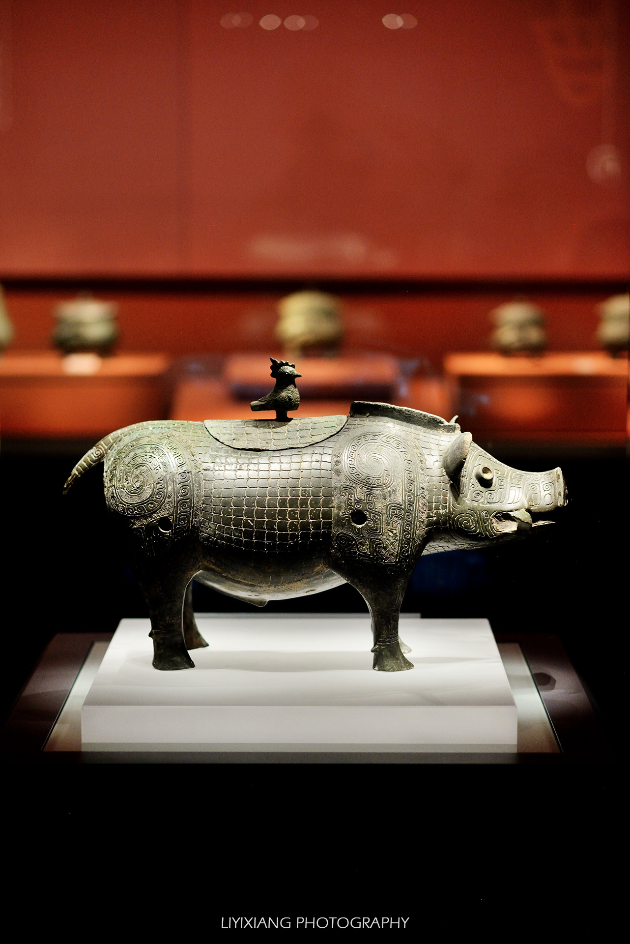 这件青铜器1981年出土于湘潭九华,是商代唯一以豕(猪)为造形的酒尊,重三十多公斤,可容酒十三升。