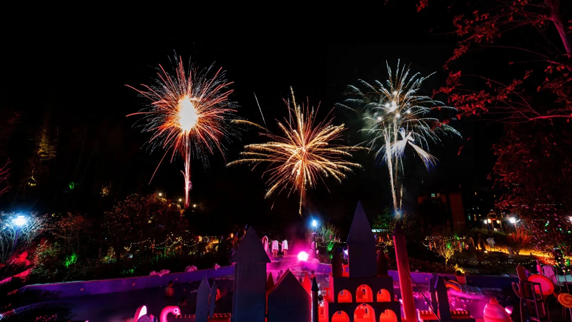 10月1日当天晚20:00,在花乐汤温泉可以观赏烟花表演