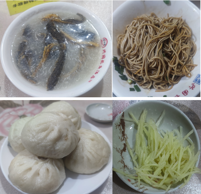标配是一碗长鱼汤,一碗干拌面,一盘包子,一碟姜丝,称之为一汤一面一包