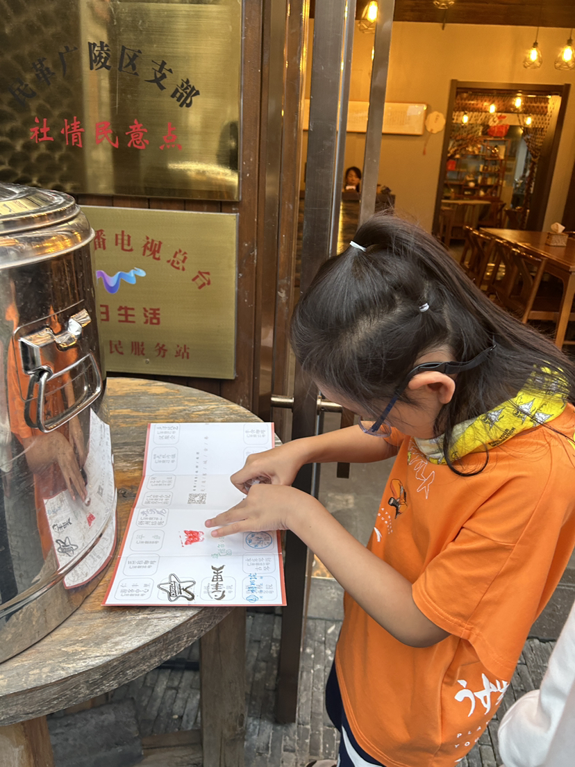 每个小朋友还领到一个通关文碟,仁丰里的很多商铺都可以敲章打卡,小朋友玩的不亦乐乎