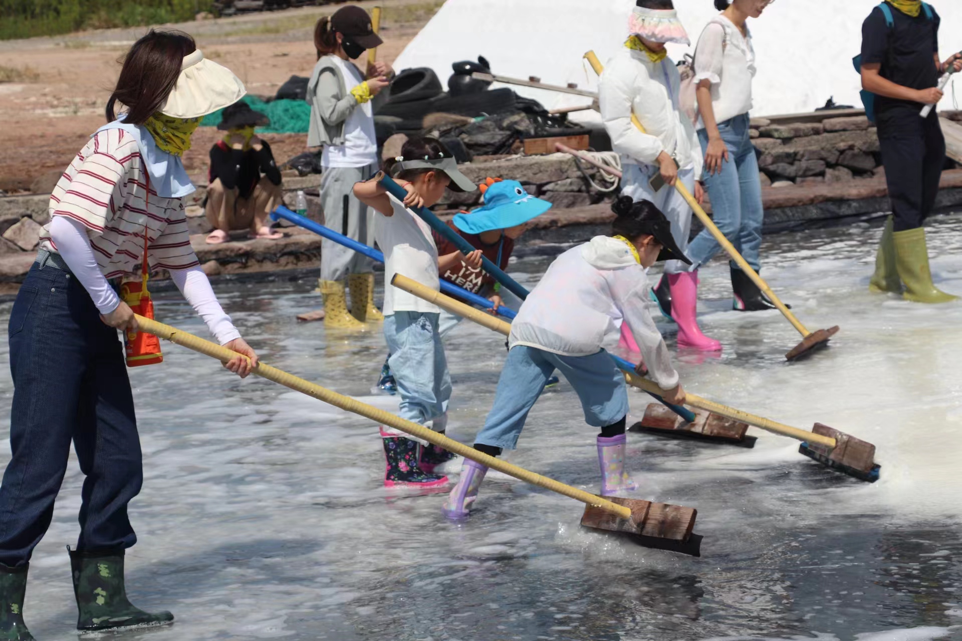 在盐博物馆了解海盐的晒制过程。海水经过纳潮、制卤、结晶、堆垛就变成了盐。领队还告诉我们繁体字的“鹽”是个会意字。臣代表监管、进贡,右边人看着在器皿里的卤水。盐是我们每个人生活的必需品,所以也是古代税收的重要来源。