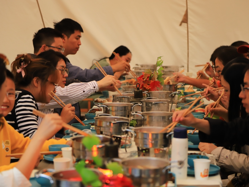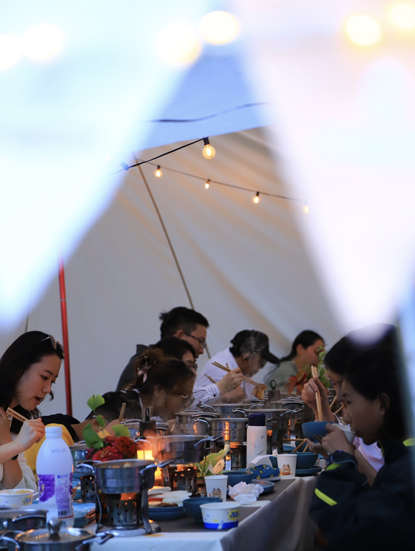 晚上大家享用营地的小火锅,单人单锅,美味健康