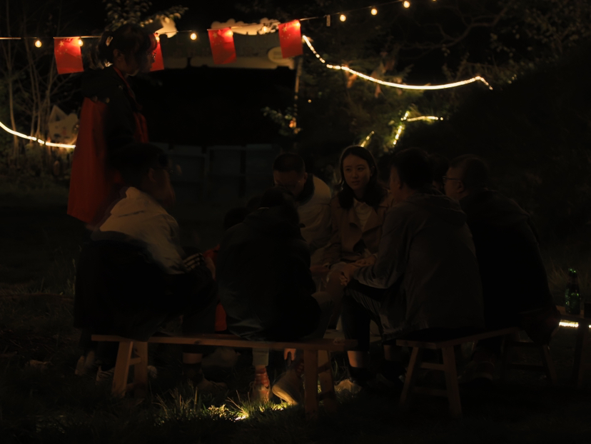 夜幕降临,大家一起围炉煮茶,分享一位姐姐从武夷山带来的茶叶