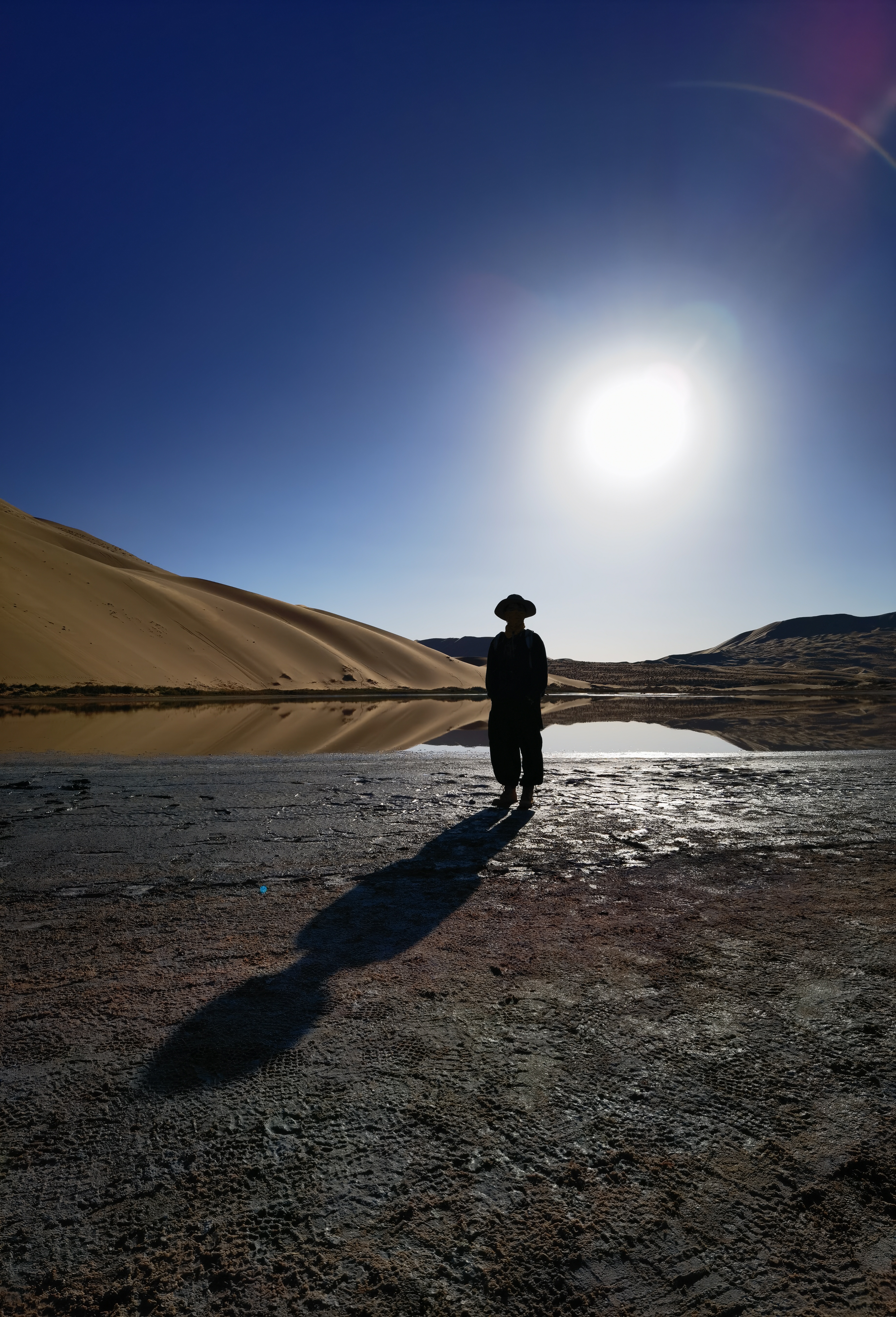 惊喜的是,游人并不多,沙漠很壮观,大小沙丘连绵起伏,错落有致,巴丹湖镶嵌其中,像一只温柔的眼睛。一行人热情高涨,拍照的DNA自然而然便动了,连巴丹湖的水都舔了,你敢信!