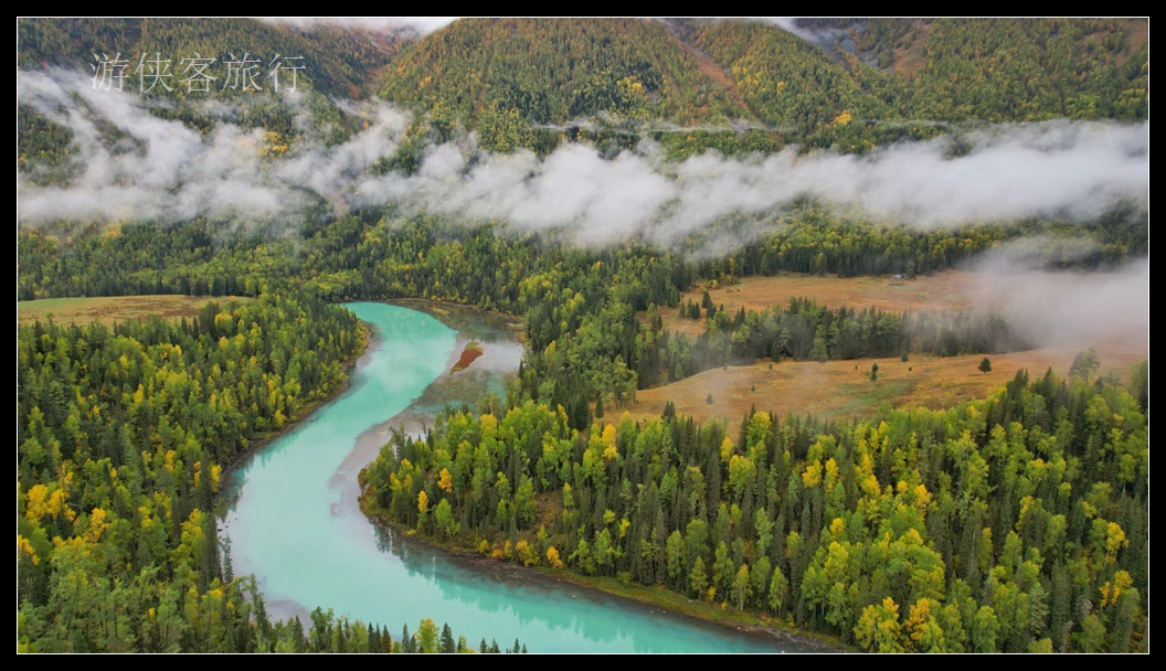 喀纳斯风景区,位于新疆阿尔泰山中段,地处中国与哈萨克斯坦、俄罗斯、蒙古国接壤地带,景区面积10030平方公里。