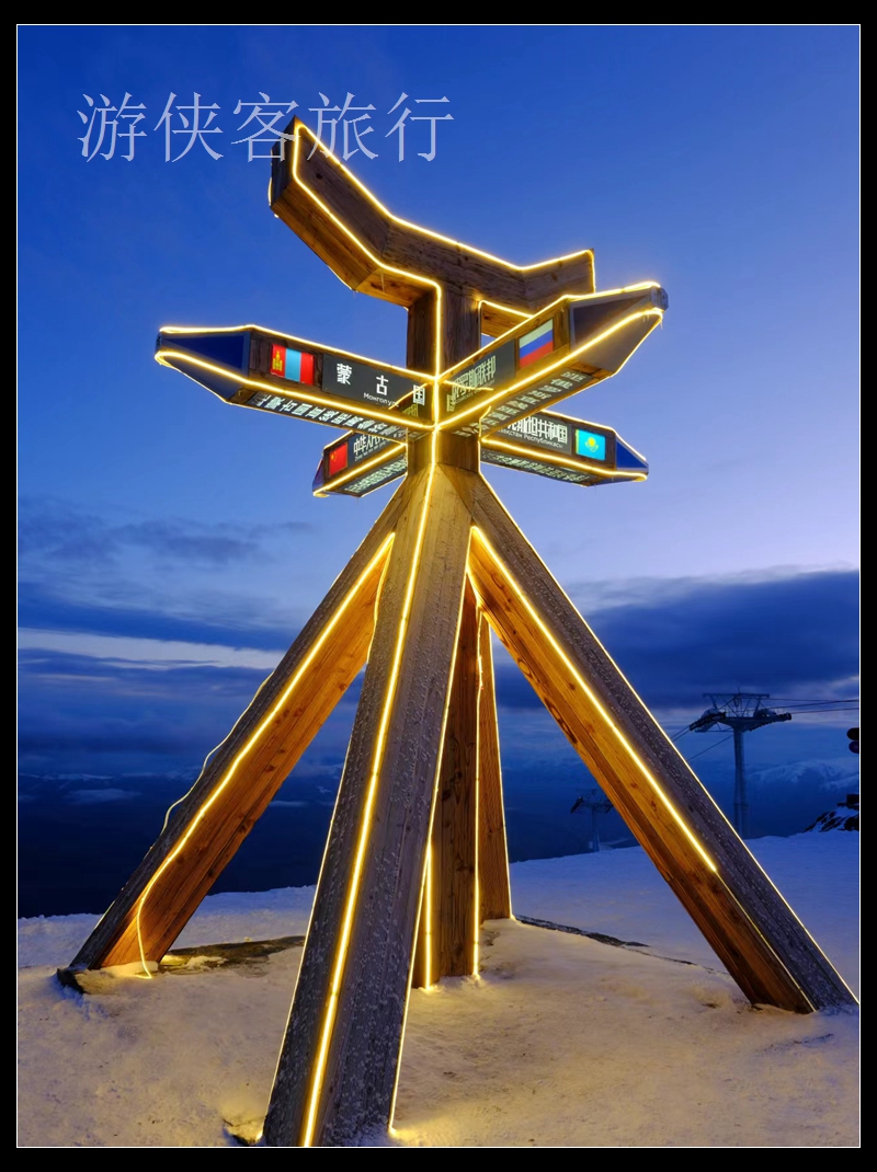 云霄峰位于新疆阿勒泰地区布尔津县禾木景区,站在云霄峰“禾•木”打卡装置前可以远眺四国,看云海奔涌,纵享山顶风光