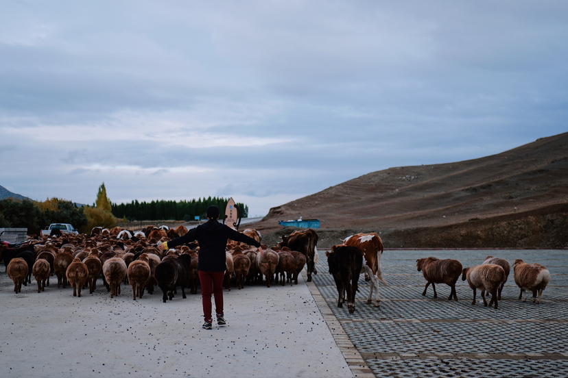 路边碰到的大哥带我们去找馆子加热生牛奶