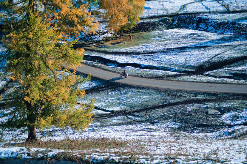 9月下旬的喀纳斯虽然因为暴雪还没黄透,但星星点点的黄和雪一起也是别有一番风情