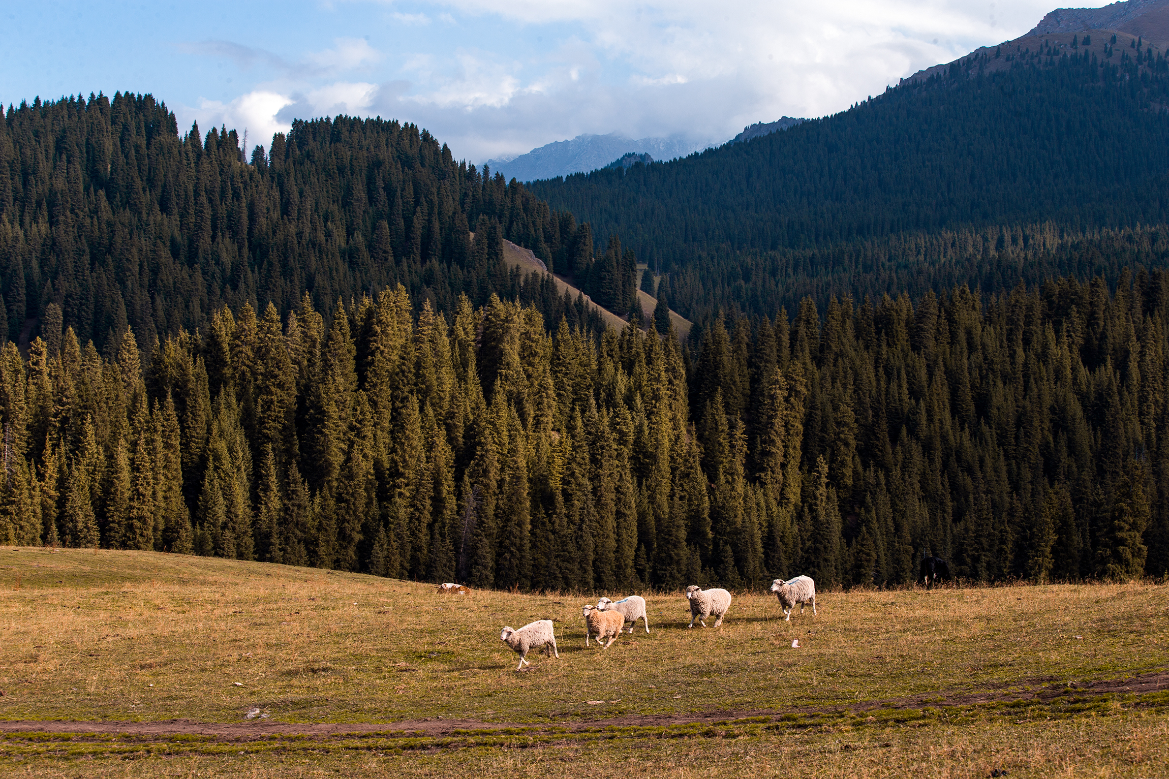 哈萨克人大多深居在高山环绕,山脉相连的盆地、谷地和平原上,哪里有山、有水、有平原,便会有在那里一年四季奔波着的哈萨克人。哈萨克人为之转场的春夏秋冬四季牧场,都是水草肥美的地方,在这些牧场里,哈萨克人过着近乎于恬静的生活,他们远离都市,与外界的联系是收音机和电视。