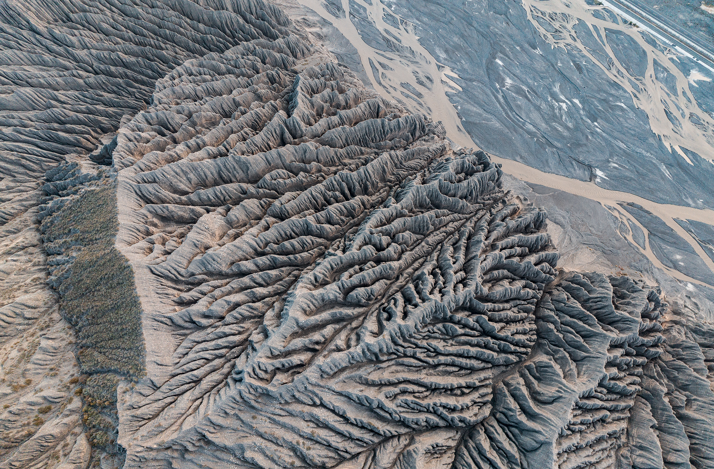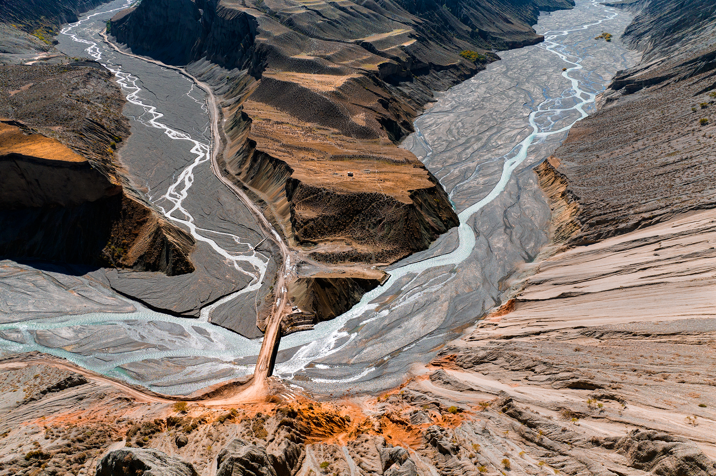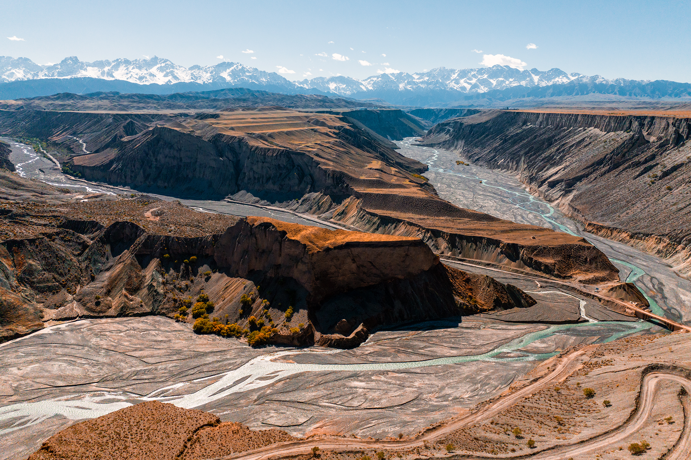安集海河发源于天山山脉,通过长年冲刷,在通古特附近冲出天山峡谷,在天山北坡下形成了规模宏大的冲积扇,河谷冲积扇规模宏大,以伞形向北张开,堪称地质奇观。这里不是常规的旅游景点,拍摄危险系数较大,站在山顶往谷底看,背脊发凉,双腿都发抖,胆子小的都不敢往下看。