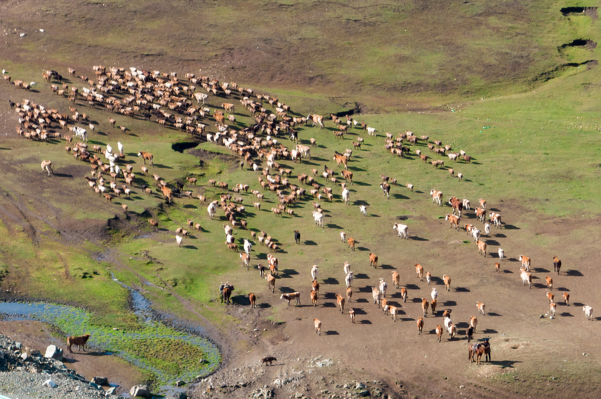 千百年来,牧区牧民模索出人与自然的和谐相处之道。他们“逐水草而居”,一年中在不同的牧场来回迁徙。生活在新疆阿勒泰的少数民族,沿袭“四季转场,终年放牧”的传统,每年3月到11月下自或12月初,赶着上百万头牲畜转场。