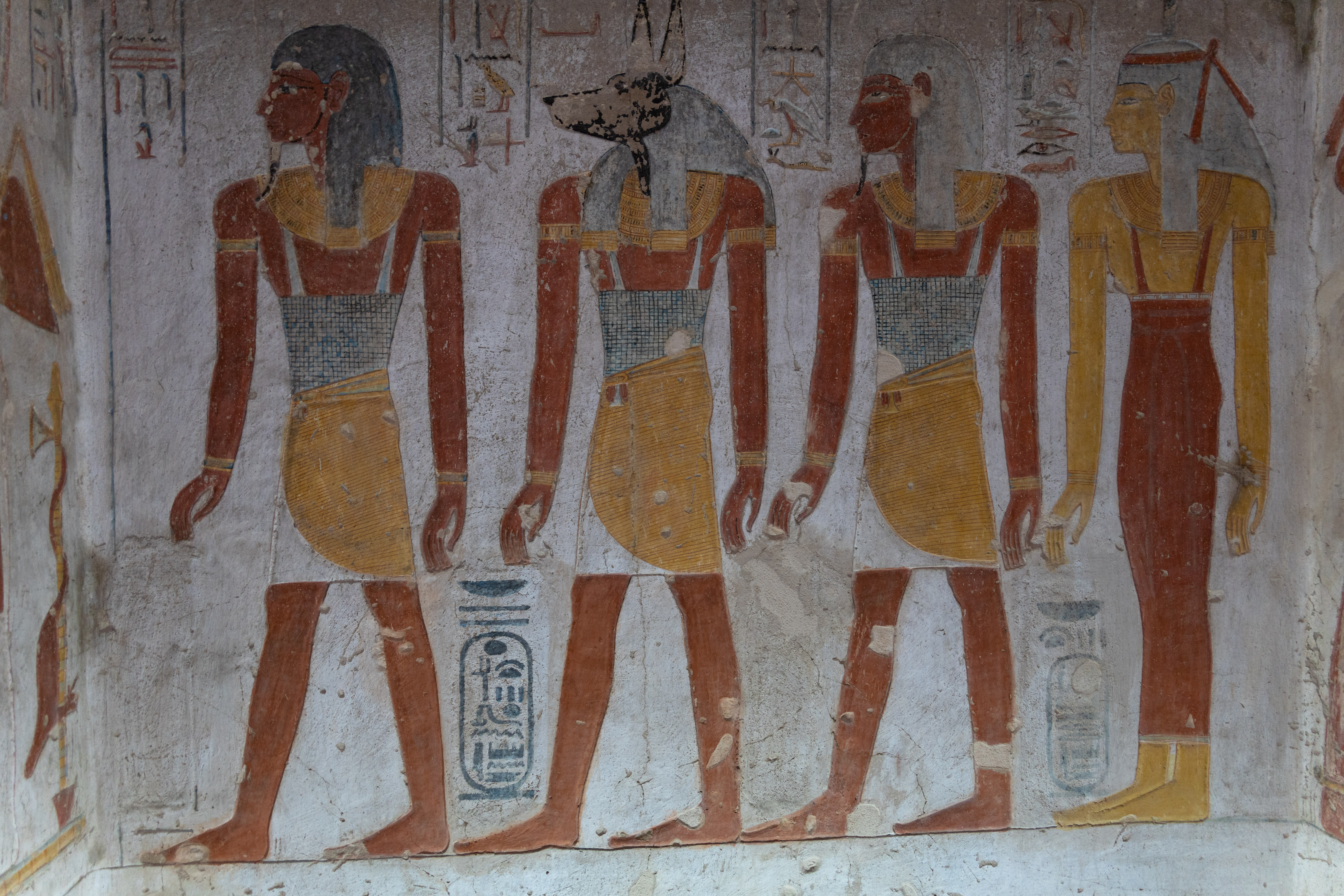 建议花点时间慢慢看,这些壁画你可以读出很多有意思的东西,可以通过神头上的符号/动物和衣服装饰判断不同神的身份,神与法老之间的互动,对重生的畅想,古埃及人的日常生活,奴隶搬砖…