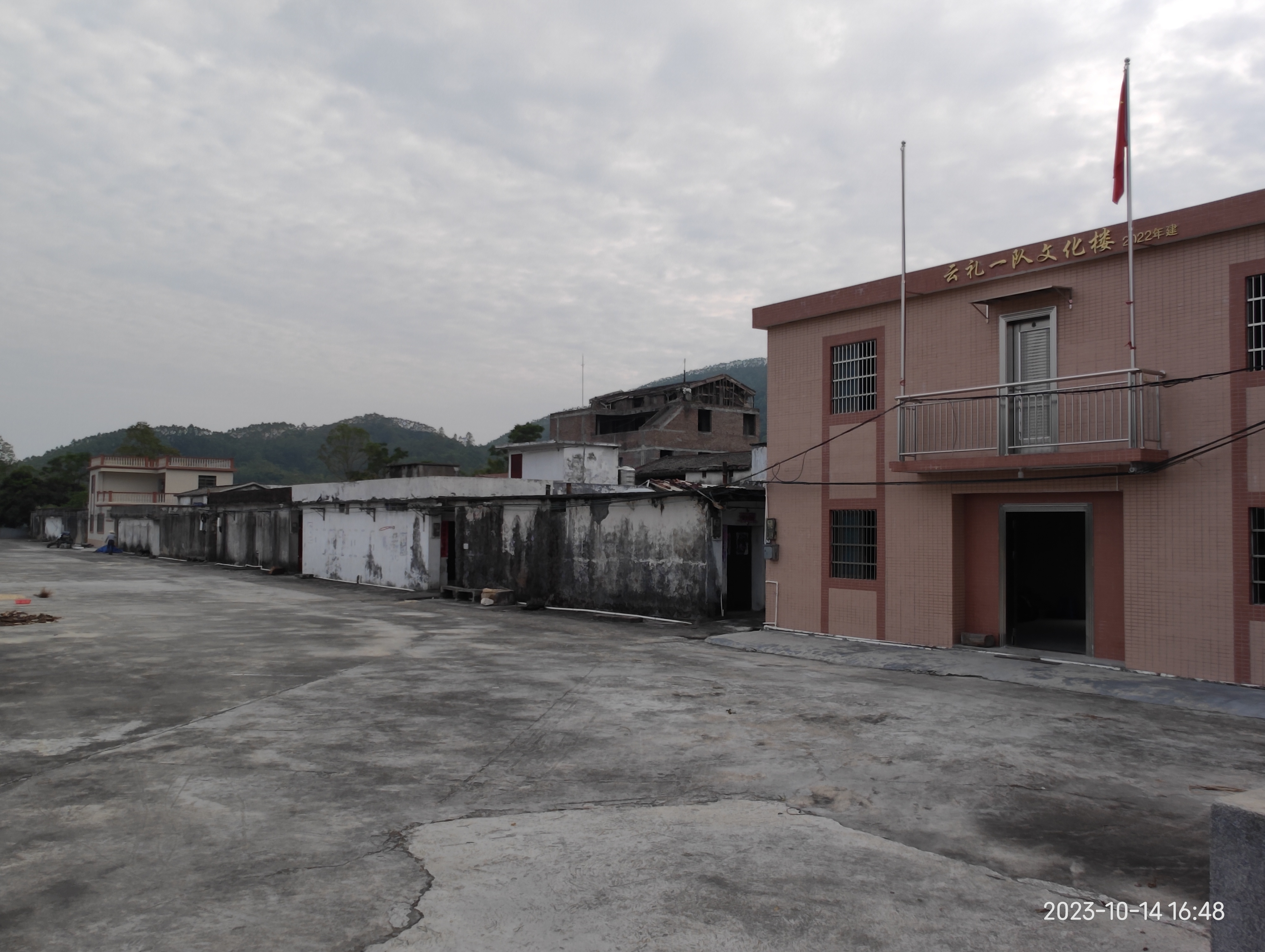 这里的村庄,小型聚居,前面是大空地广场,估计作晒谷场。旁边就是一排平房,这平房后方,又连接一层层的房屋,整片呈长方形状,大概这就形成一个生产队。或许,曾经也是繁闹的家园。而眼下,人影稀疏,临近傍晚,更显宁静。可田野里的大小牛,就更显得丰富,远处有背上企着白鹭的大水牛,路旁有专心吃草的老黄牛,偶尔飞鸟掠过稻田,落在远处电线杆上。这里似乎剩下老辈的人,银发婆婆缓慢走过,左手捧树枝,右手拉着干枯的粉葛藤叶,往房屋方向拖去。问其“系唔系拿来当烧柴?”,她点头和谐微笑:“系啊!”