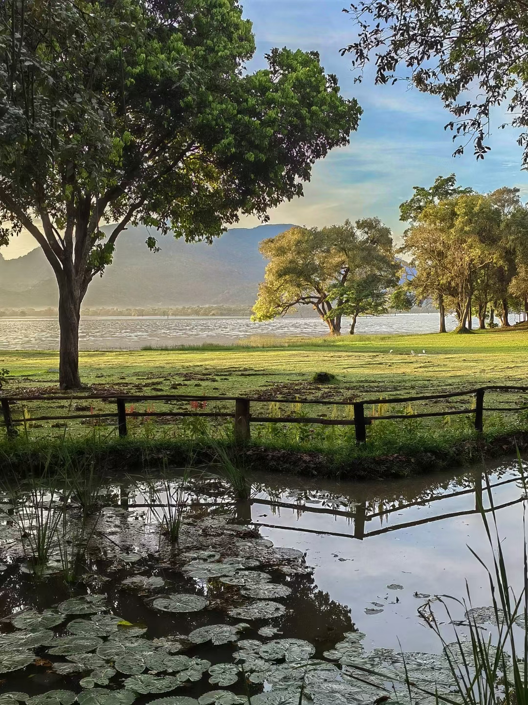 傍晚,我们团队到达斯里兰卡,入住了科伦坡市中心贝拉湖边的五星级酒店-肉桂湖畔酒店。 次日清晨,我们(我和老姐,老公)漫步酒店内外,被眼前的美景震撼到了… 酒店对面是若干现代化的高楼大厦,朝霞,椰树,盛开的花卉……心旷神怡开启了美好的一天。