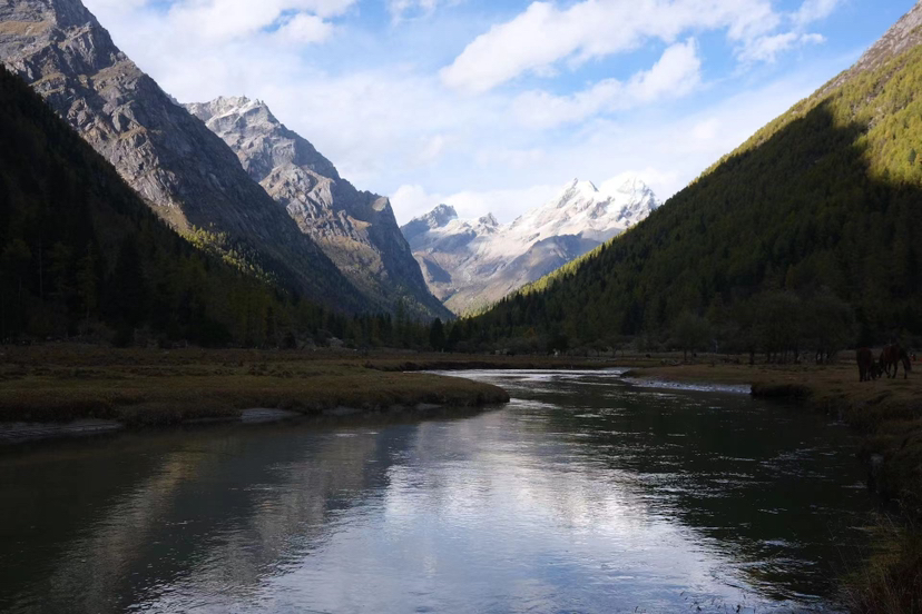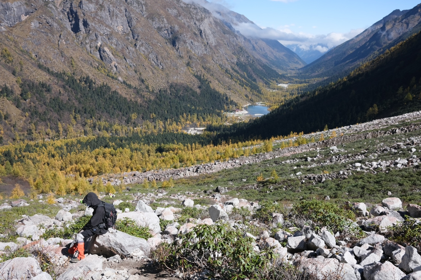 终于在临近30岁时完成了在人生to do list停留很久的长穿毕徒步,作为自己的首次正式徒步,此行的一切都完美得刚刚好。零度的气温下,在帐篷里度过了新鲜又不太适应的两晚;在第一晚的木骡子营地看到了晨雾、日照金山以及由幺妹峰作为前景的星空;最后一天的凌晨两点启程背着十多公斤的全部行囊重装徒步以爬升800米、下降1000米的方式翻越了海拔4650米的叉子沟垭口,看见了日出时分峡谷间翻腾的云海;一路走过了无数草甸、滩涂、树林,从夏末的绿走入深秋的金黄,河流和雪山始终在身边陪伴着我。同行的是一位稳重周到又在户外的简陋环境中做得美味菜肴的优秀领队(高达,特别强调一下他在户外做的菜真的超级好吃,吸引了很多其他团的徒步者的赞叹),和四位徒步经验丰富、一直给予帮助并肩鼓励、聊得沿途美景和徒步感受而不过问个人工作生活的完美同伴。终于做了一直想做却没有机会做的事,最后一程终于从林间走出迈向徒步终点时,腿开始发抖,也有些想要流泪。专心地走路,用双手牢牢握杖,双脚扎实地踩下每一步,这样的感觉很好。