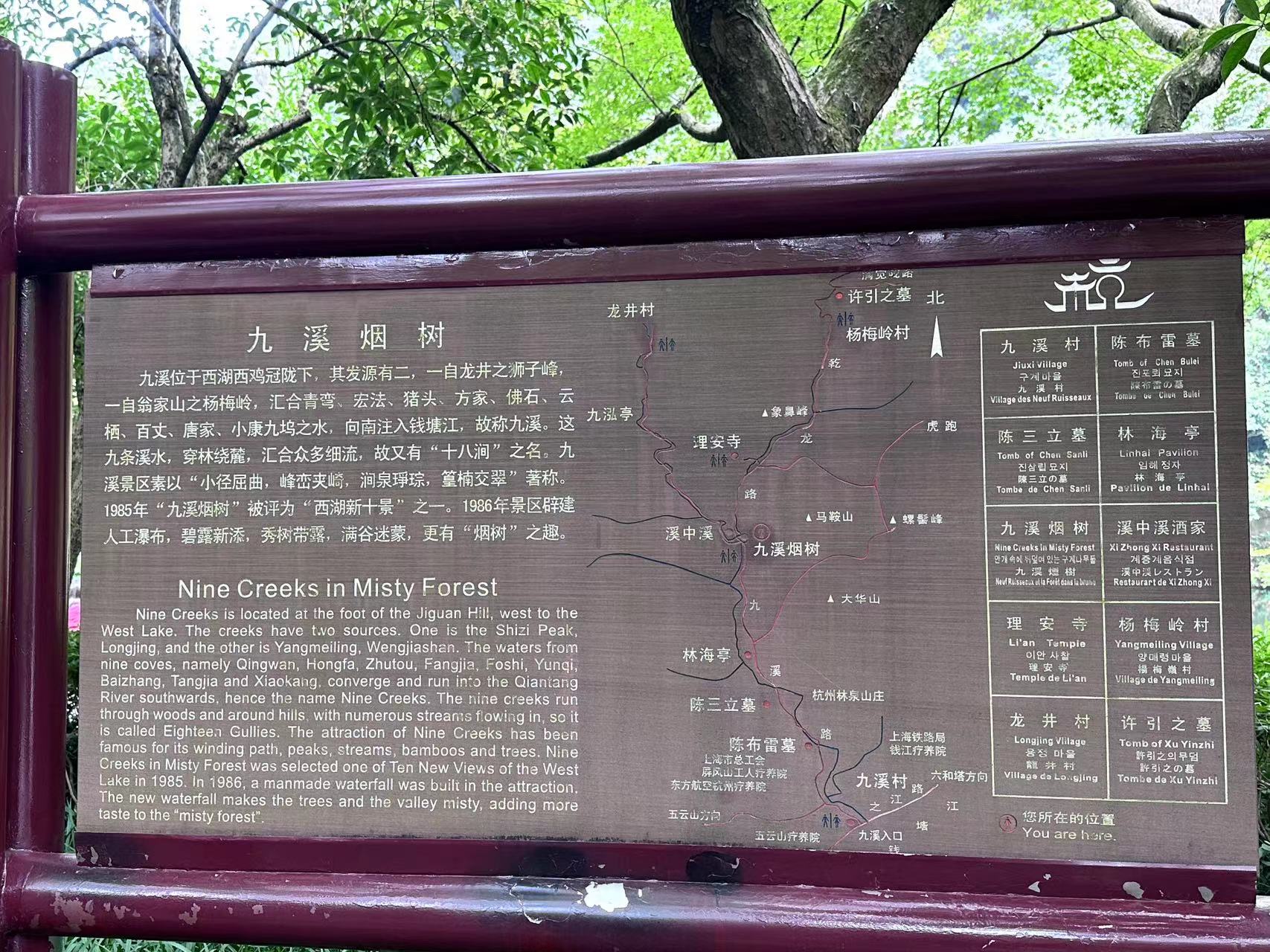 大家跟着领队欢声笑语的踏上了今天的征途,从九溪起点开始路过了林海亭--九溪烟树--龙井村。对!就是享誉全世界的雨前龙井茶那个龙井村,那一路上都是种植着茶树的小山坡,其实真的看到后又很难和我们生活中喝的龙井茶联想到一起,从茶树上采摘之后摊放、杀青、回潮、辉锅等一系列的步骤后再成为我们喝的茶叶,无不感叹中华文明的伟大。