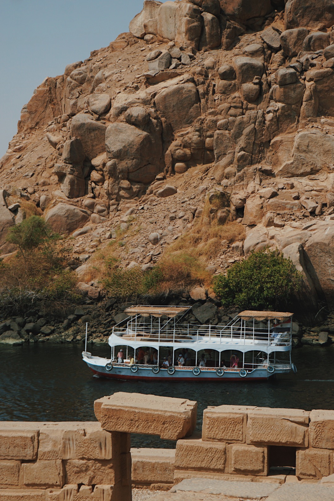 菲莱神庙它位于阿斯旺尼罗河的一座小岛上,是一座水上神庙。我们从Tolip酒店出发驱车20分钟左右到达乘船码头,再乘船20分钟左右到达神庙。
