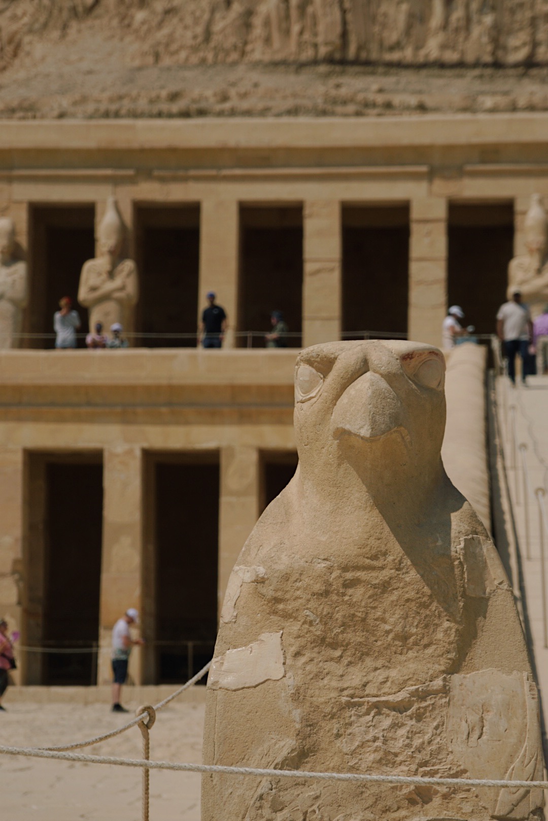 女王庙是为了纪念古埃及第一女法老——哈特谢普苏特,她统治了埃及约20年,使埃及繁荣昌盛,被称为埃及的武则天。在当时男权至上的古埃及社会,女性担任法老是及具不可思议的事情,可想而知哈特谢普苏特面对的压力以及能力。