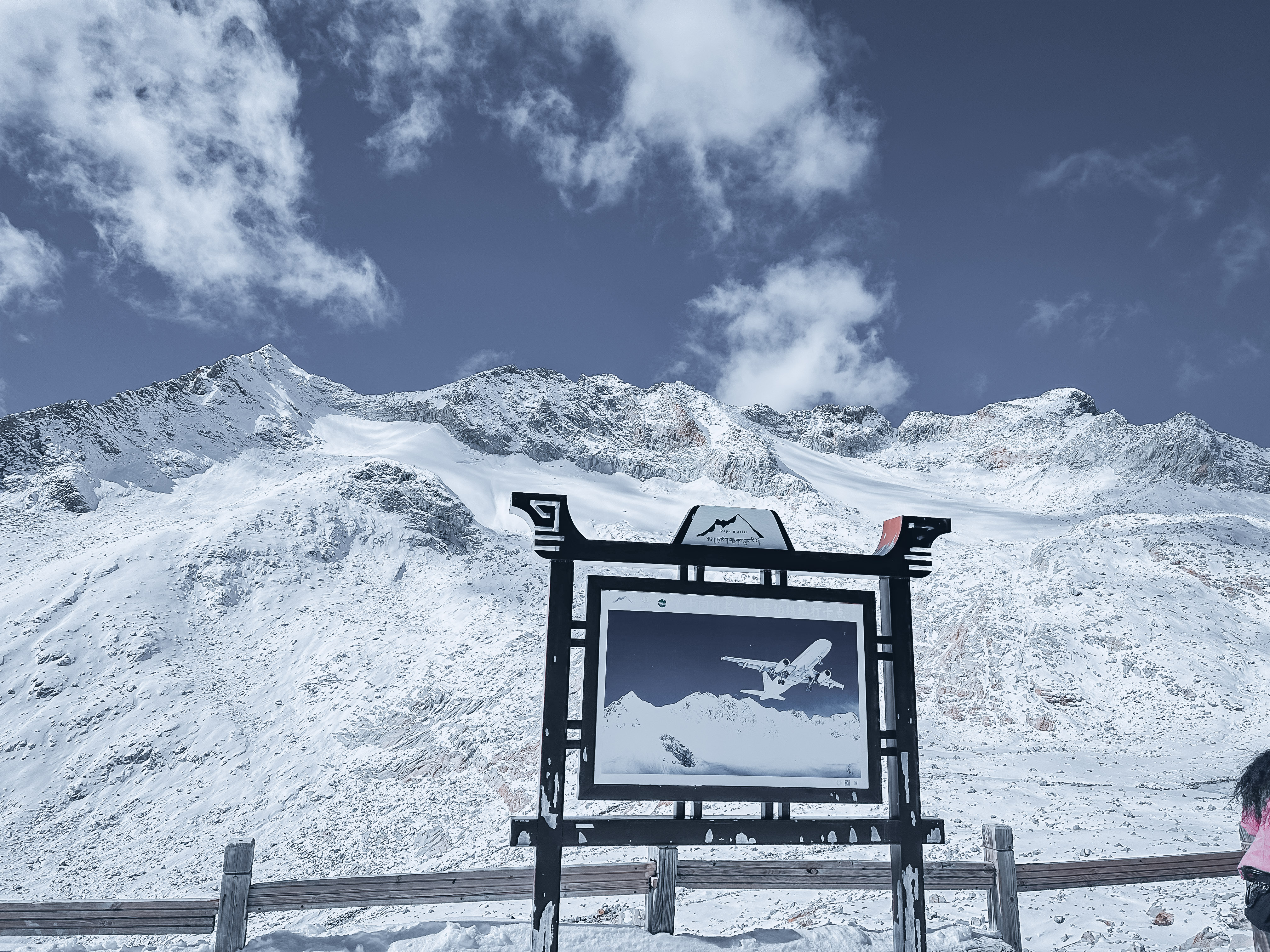 达古冰川可游览区域并不大,游览方式也很简单,先乘坐大约1小时的观光大巴,中途会停靠1-2个站点,其余站点可返回时自行选择下车,到达观光车终点站,购买索道乘坐索道上到终点以后,有一个约1000平米的平台,这里可打卡“海拔4860”高程纪念碑,还有一个冰碛湖——泪湖,主体冰川是张涵予饰演的讲述川航8633号航班刘传建机长拯救飞机故事《中国机长》的外景取景地。这里还有一个“全世界最孤独的咖啡厅”,为什么孤独呢,因为你们要不去喝咖啡,他肯定就孤独了。一杯咖啡60,还有提拉米苏等甜点。当然,按照惯例,景区里的东西,一般都不会太便宜。