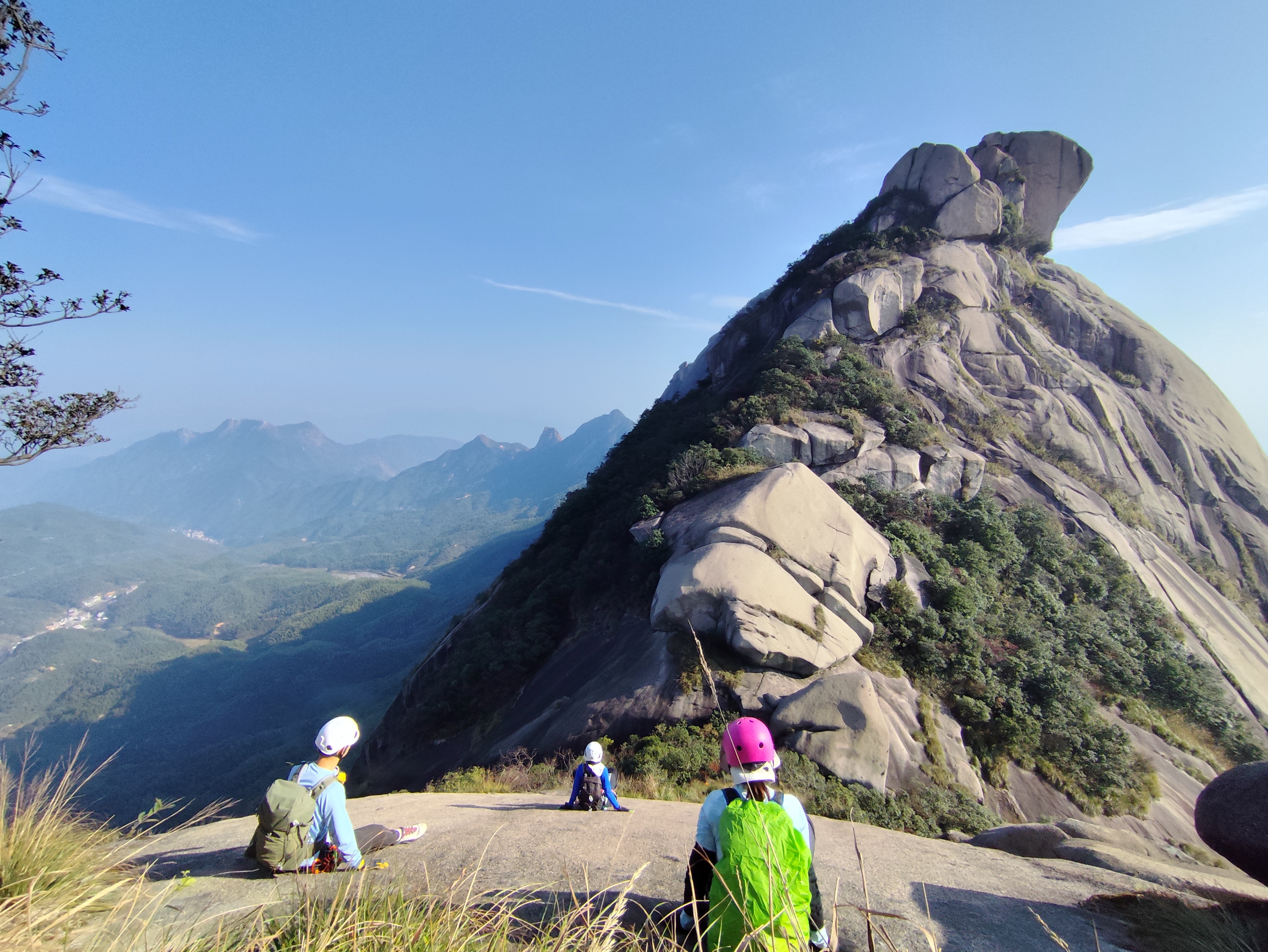 两天徒步有N处绳点需要抓着爬升或速降,多处手脚并用,爬木头梯子。均无下撤点,全程都会行走在山林野路上,路况基本为山林小路,裸露花岗岩,看似光滑但摩擦力很大,需要有中高轻度的体力及熟练使用下降器。
