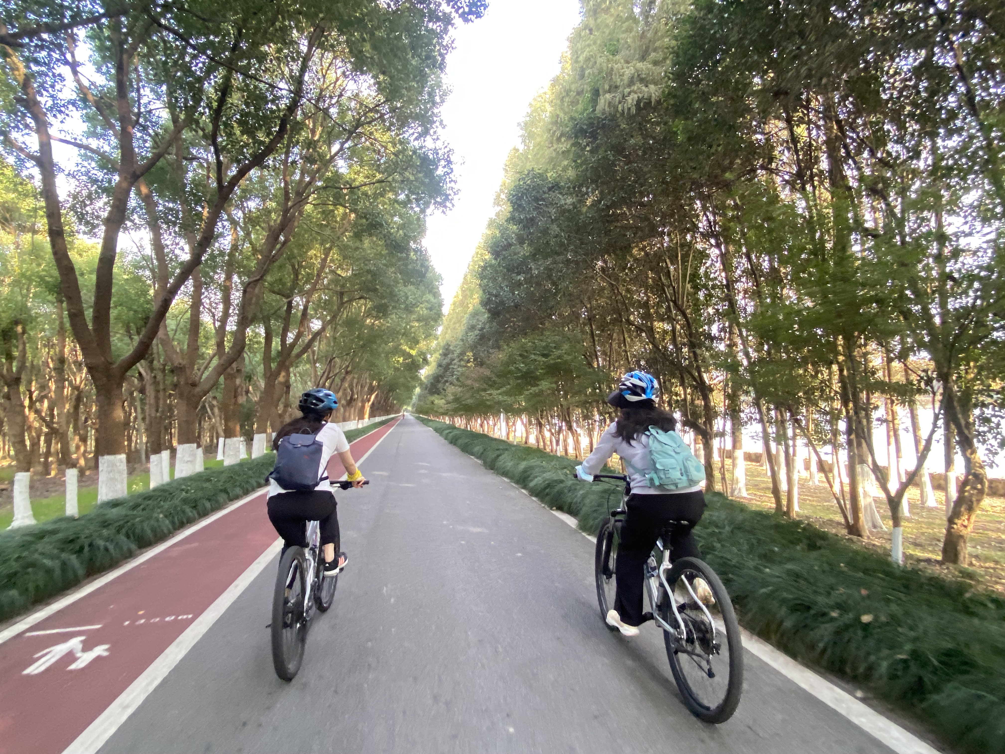下午2点,我们乘坐大巴前往骑行起点,小伙伴们选好山地车,开始了新的骑行之旅。太浦河两岸的道路平坦宽阔,非常适合骑行。我们沿着河岸一路向前,享受着风吹过脸颊的畅快感。沿途的风景美不胜收,田野、村庄、树林交织在一起,构成了一幅幅美丽的画卷。