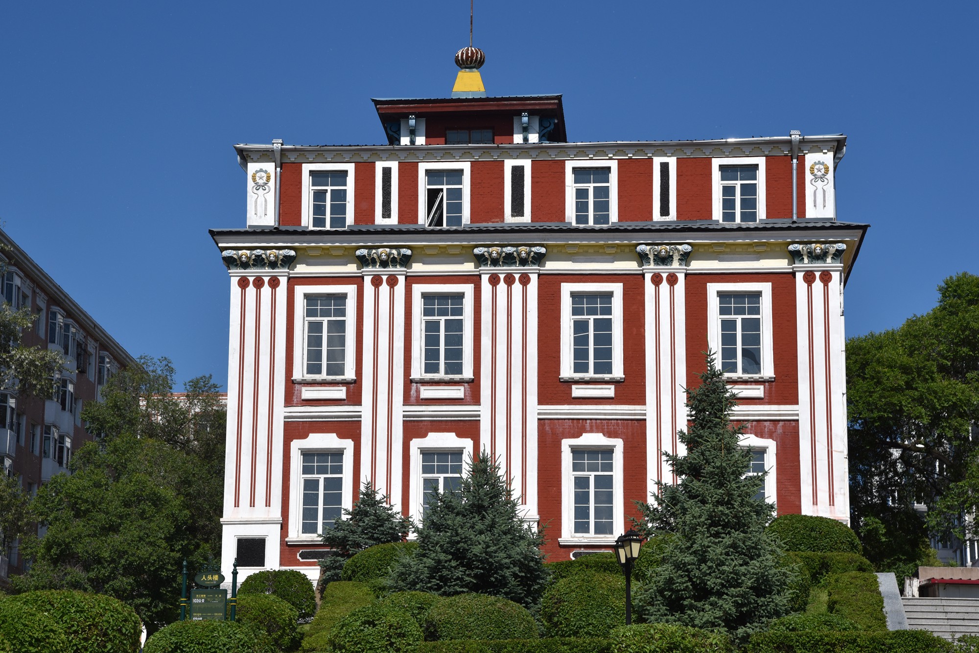 赤查果夫茶庄旧址建成于1914年,原为俄罗斯人契斯恰科夫的茶庄,主要用于存贮、检验出口茶叶,因三、四层间檐下有人面浮雕,故称其为“人头楼”。1927年日本在此设立领事馆,解放后这座楼曾作为东宁县人民政府办公楼,1952年后为驻军营房,1992年后改为商用至今。这座百年建筑见证了绥芬河的历史风云。