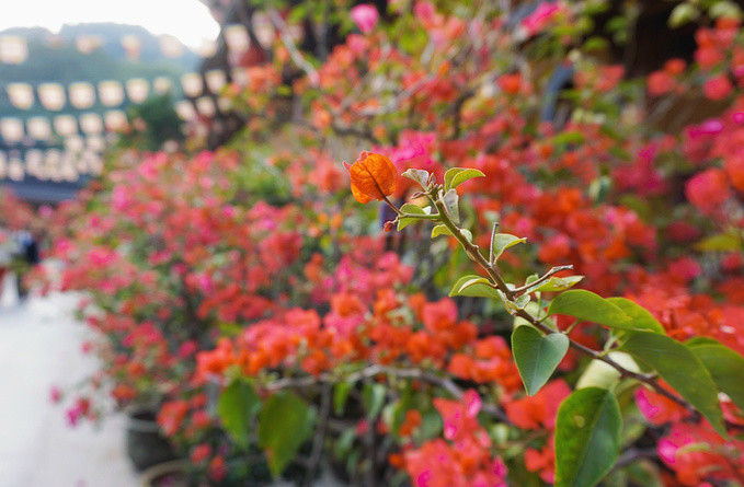 这段廊桥很多台阶,好几层楼高,所以拍下来才会庙宇屋檐层层叠叠,景深极为好看。