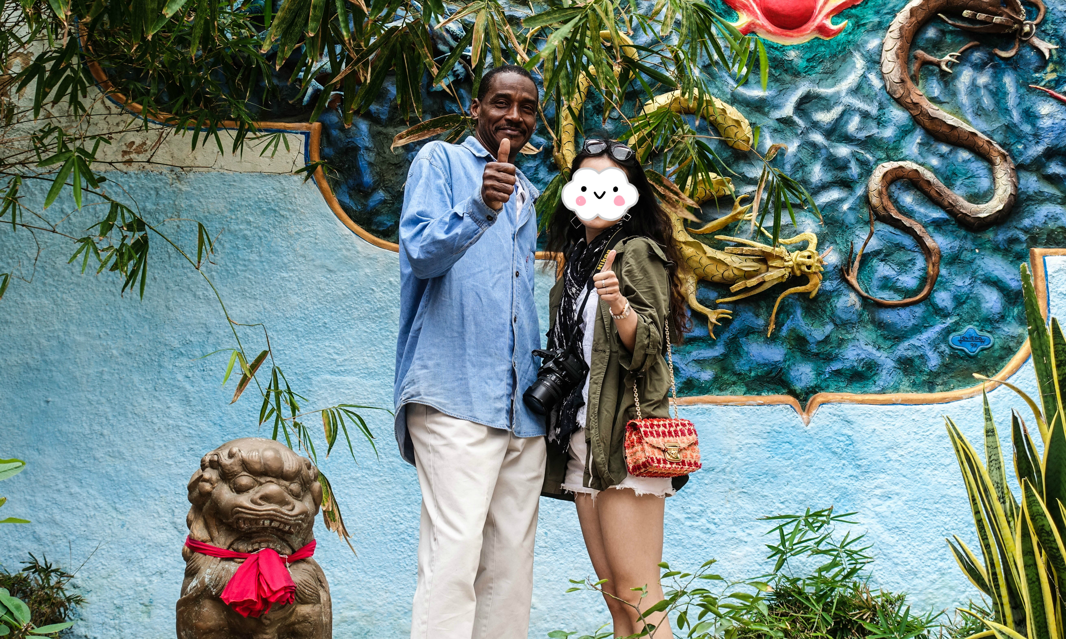 车里的女士向我们打招呼🙋,询问我们要不要坐老爷车观光。