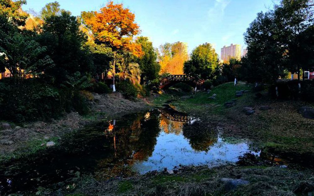 河道上,秋叶儿虽是杂乱, 但还是五彩斑斓…
