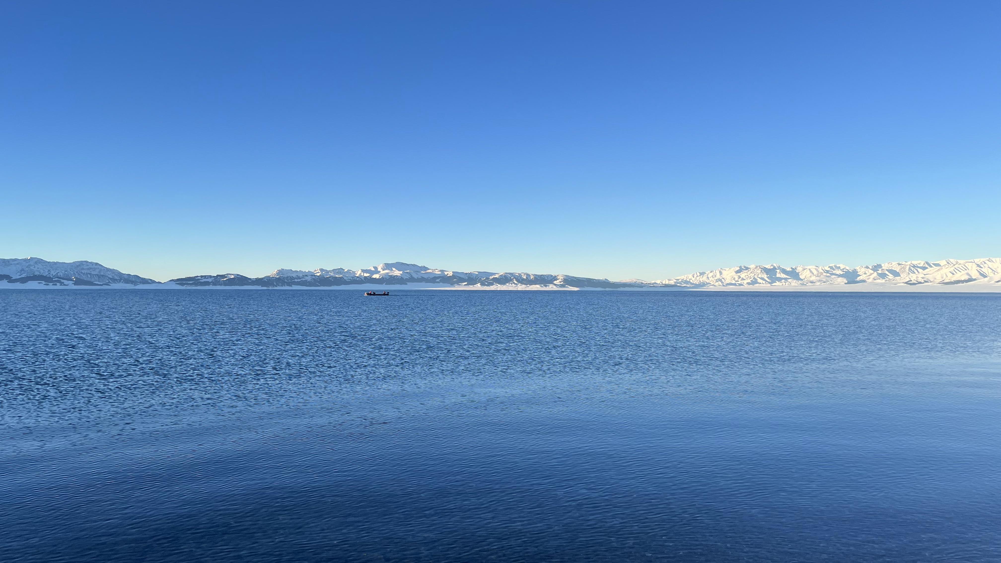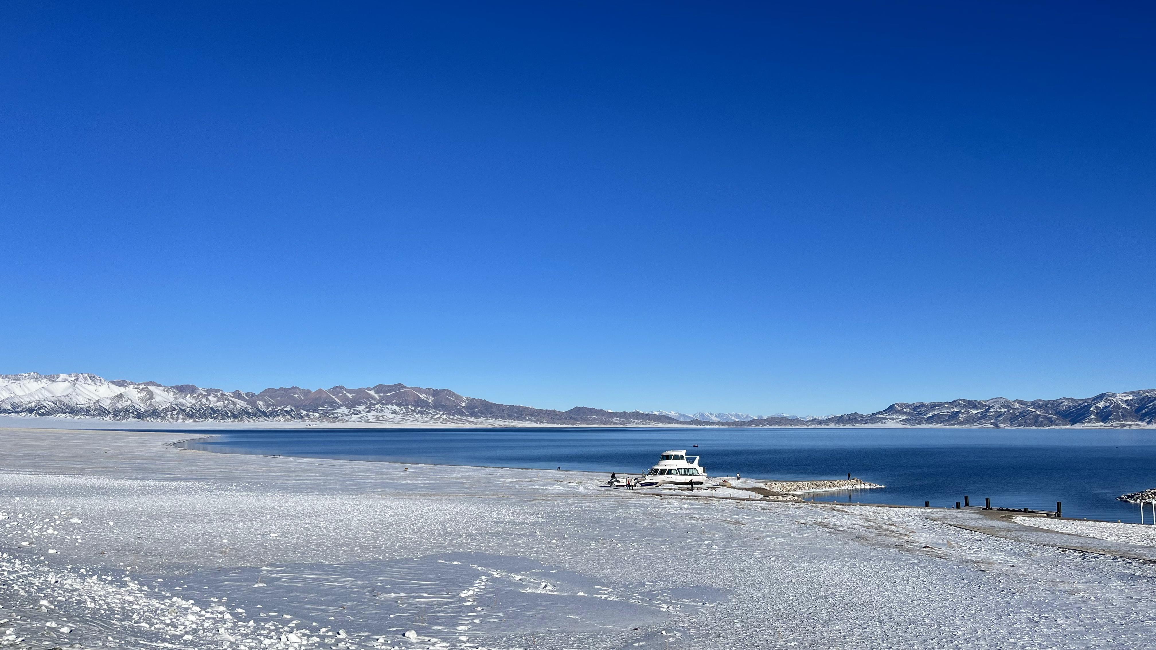 第二天环湖而行,冬季的赛里木湖新疆赛里木湖冰雪连天,清澈的湖水结冰后,通透如玻璃,在阳光照射下发出诱人的蓝宝石一样的光,分不清是天空之蓝的渲染,还是湖水之蓝的沁润,大自然的鬼斧神工令人惊叹不已。
