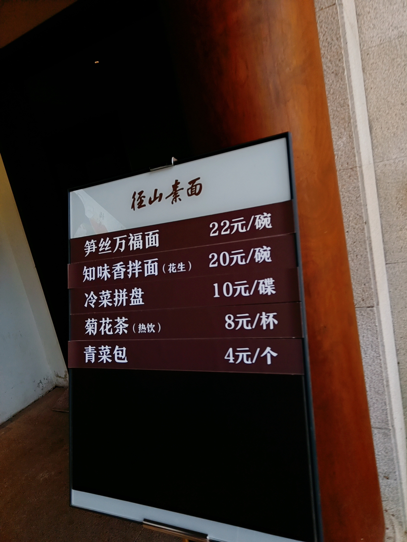 寺庙门票30元,里边笋丝面22元,在外边排队,里边自助加调料,自己收拾碗筷,笋丝面里有胡椒粉,不能吃的注意下。