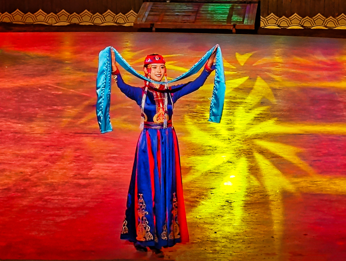 晚会将将 蒙古 族长调、呼麦、马头琴音乐、搏克等珍贵的非物质文化遗产项目以及 阿拉善 婚礼、萨吾尔登、陶布秀儿舞蹈等 阿拉善 地区特有的民族歌舞文化融为一体,展现出一幅幅气势恢宏、斑斓壮美的民俗风情画卷,让游客可以更好地了解 阿拉善 地区的历史人文特色。