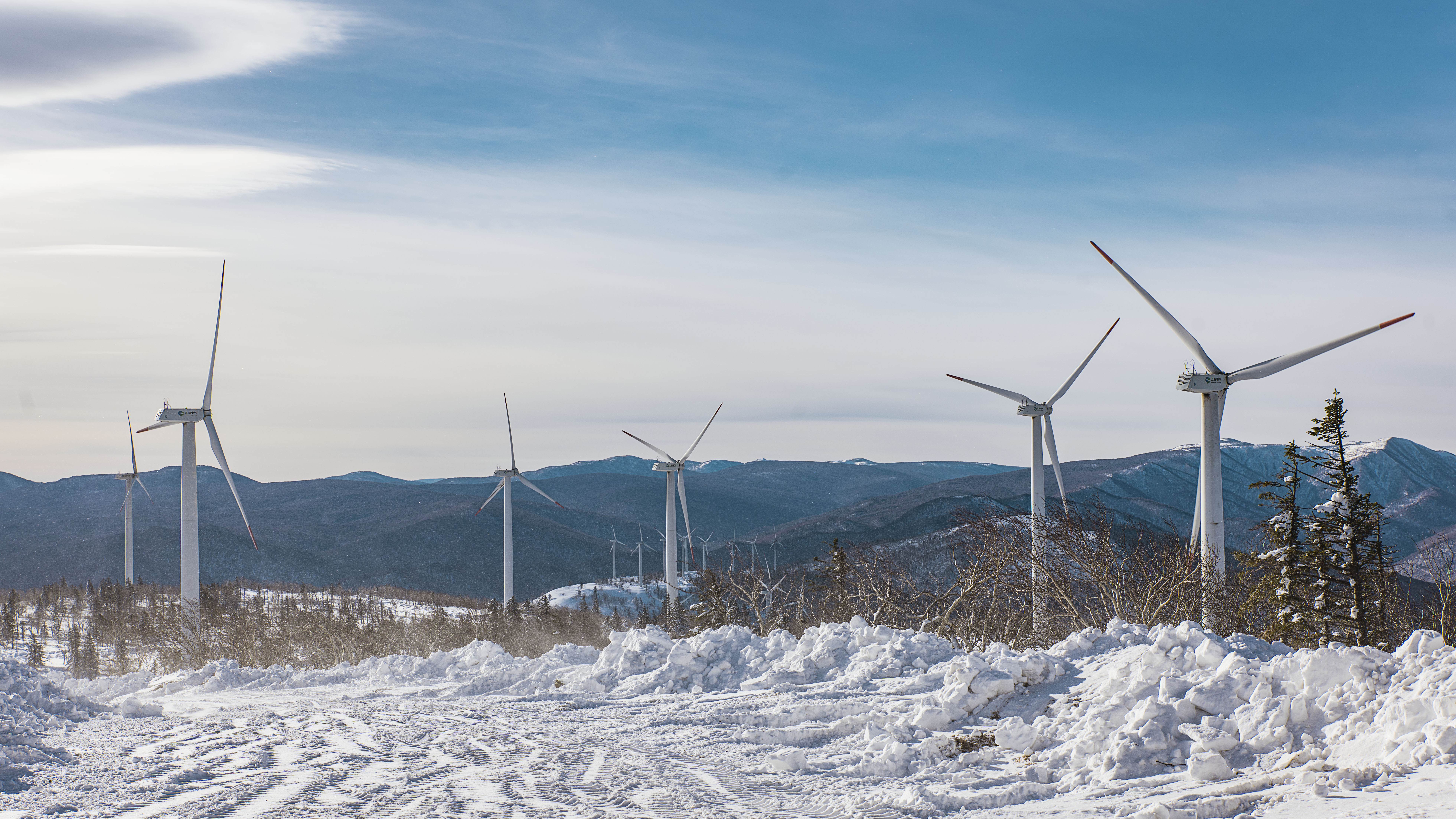 早餐后,首先前往风车雪山。距离13公里,约20分钟抵达。风车雪山位于黑龙江老秃顶山海浪风电场,海拔1600米,是黑龙江省最高峰。这里安装有40台风力发电机组,机组高80米,风轮长30米,漫山转动的风轮与自然奇观雾凇、雪松、白草地构成了一道靓丽的风景线。