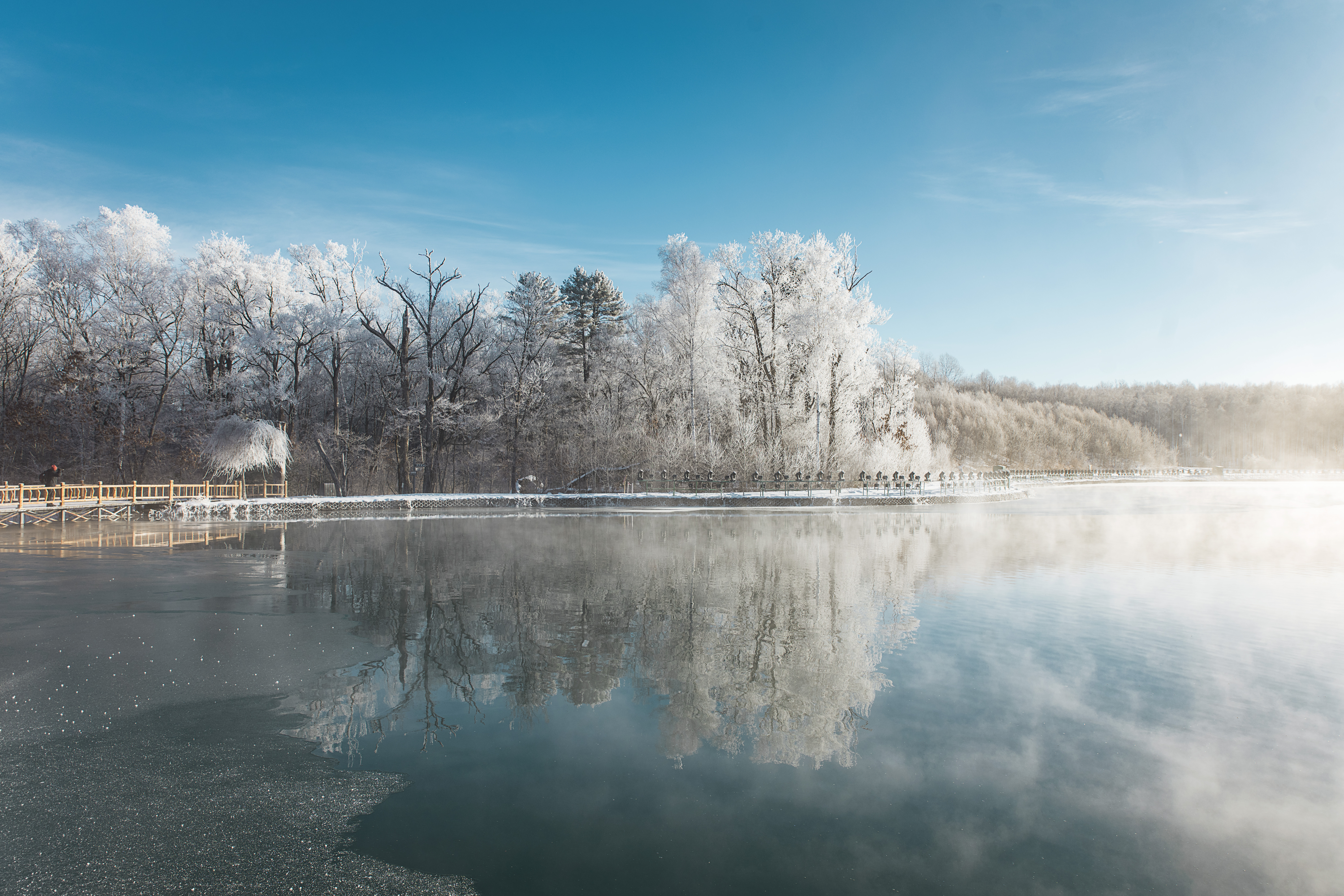 今天要赶个大早,早早的吃完早饭,启程前往雾凇岛观赏雾凇,日出时分,阳光洒在小岛上,别有一番冬季的韵味。