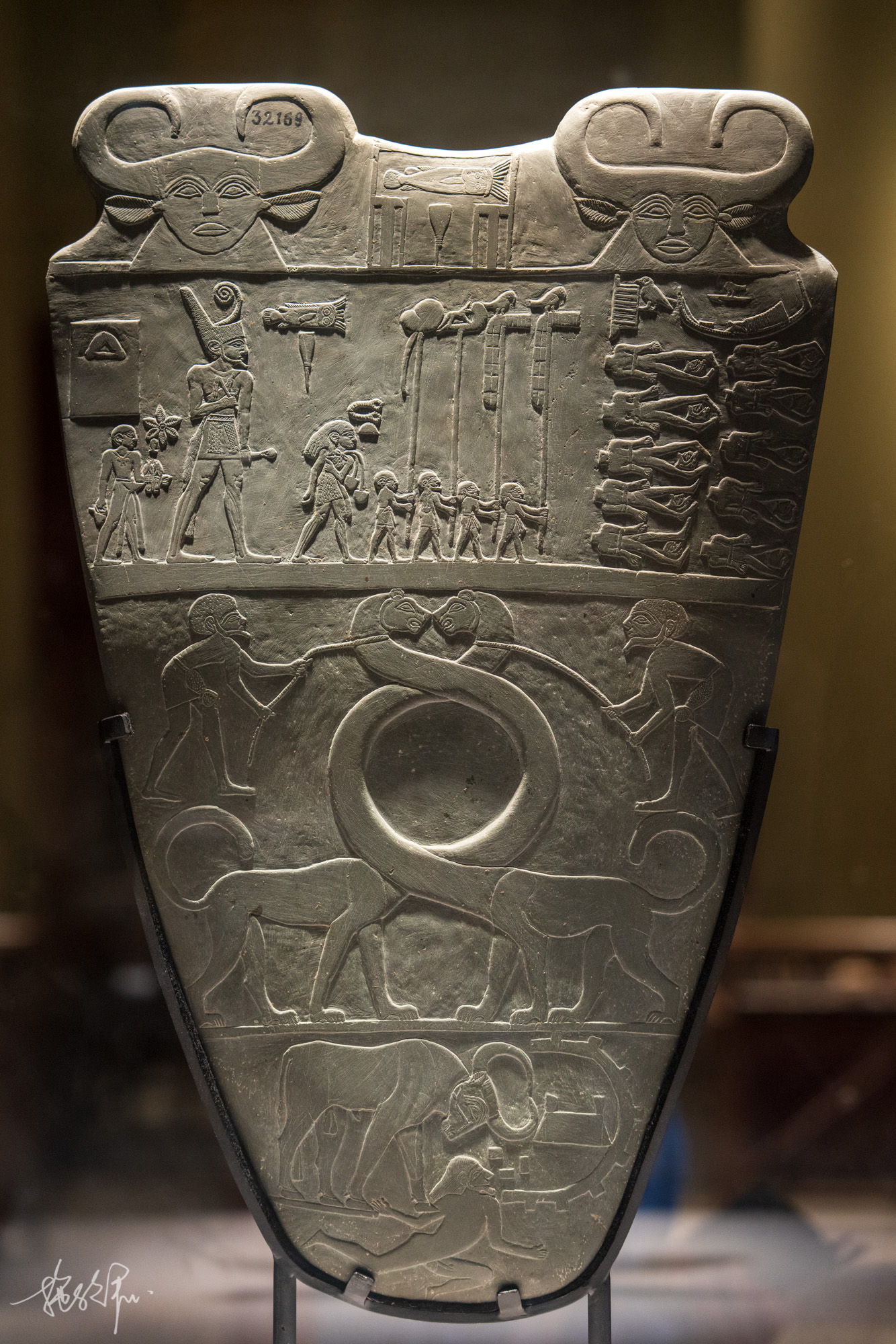 纳尔迈调色板是整个博物馆最古老的文物,这块调色板被埃及古物学家认为是整个古埃及文明的起源,也是纳尔迈作为埃及第一王朝开国之君的证明。