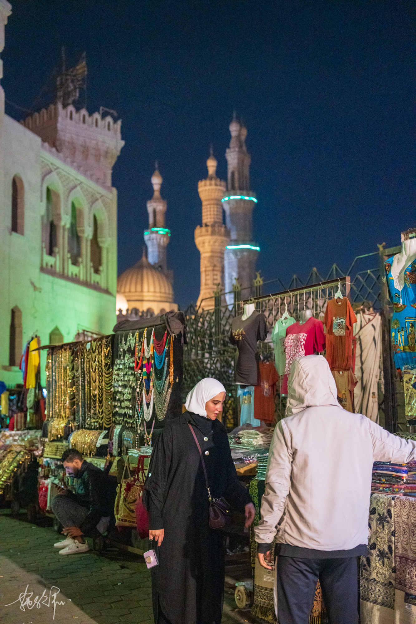 到了晚上才继续前往下一个目的地,哈利利市场。哈利利是古老的一条商业街,有许多清真寺做伴,人流密集、商铺繁华,进入需要步行才行。早就做好了也许打车去,回来就会比较麻烦,但没有想到如此麻烦。