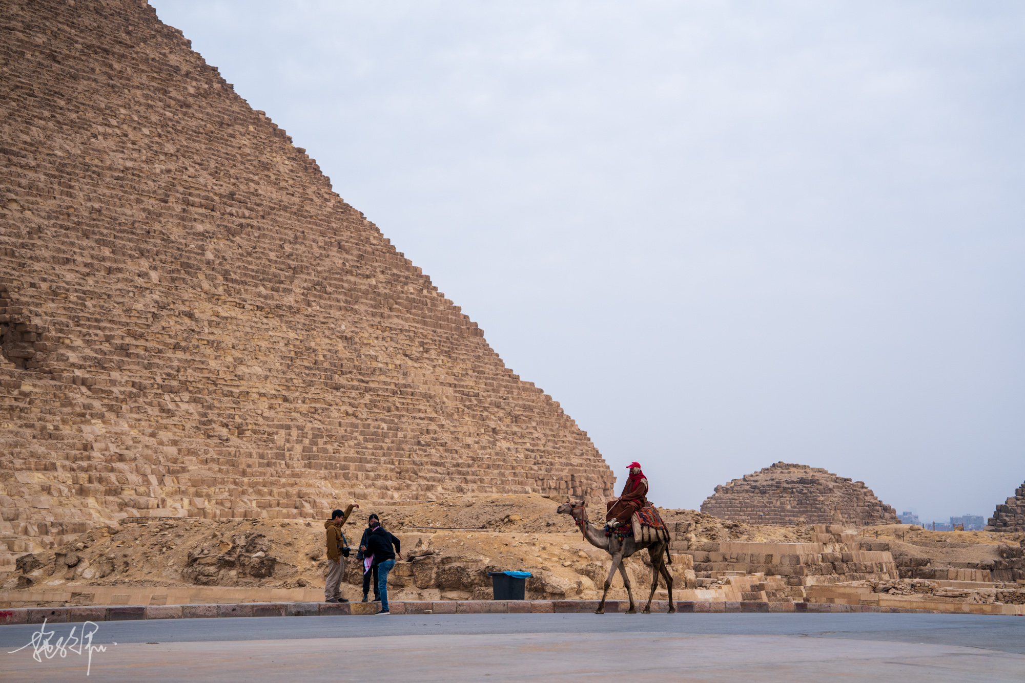 期待已久的金字塔之旅,来的这一天却是阴沉沉的天气。12月下旬的开罗果然是有冬天的感觉,我穿着薄薄的裙子搭了一件外套显然是不够的,这一路的感受就是冷、凌乱、风好大、沙尘飞扬,好难受。