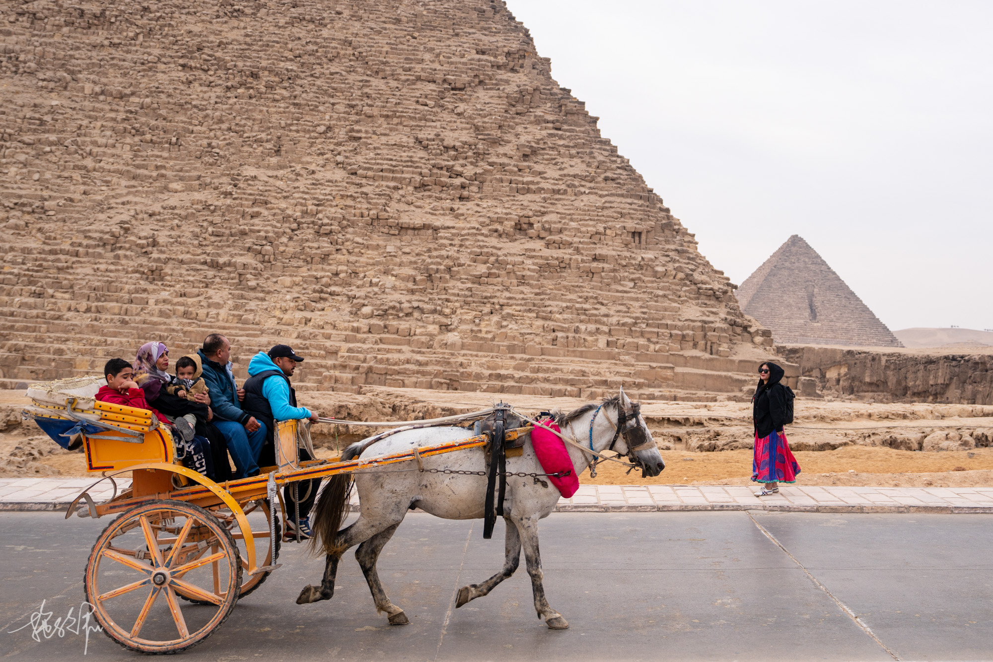 之前就做好功课,六塔去往狮身人面像250-300磅即可,我让五毛去谈价300磅送我们过去得了。此时好戏上线,马车送我们走到卡夫拉金字塔时就不继续往前走了,有一个带着证件的工作人员要求我们付款。我说不行,必须到狮身人面像我才会给300埃镑。讲了半天终于让走了,但最后的说法大概是让我们给马夫100小费,一共要400。