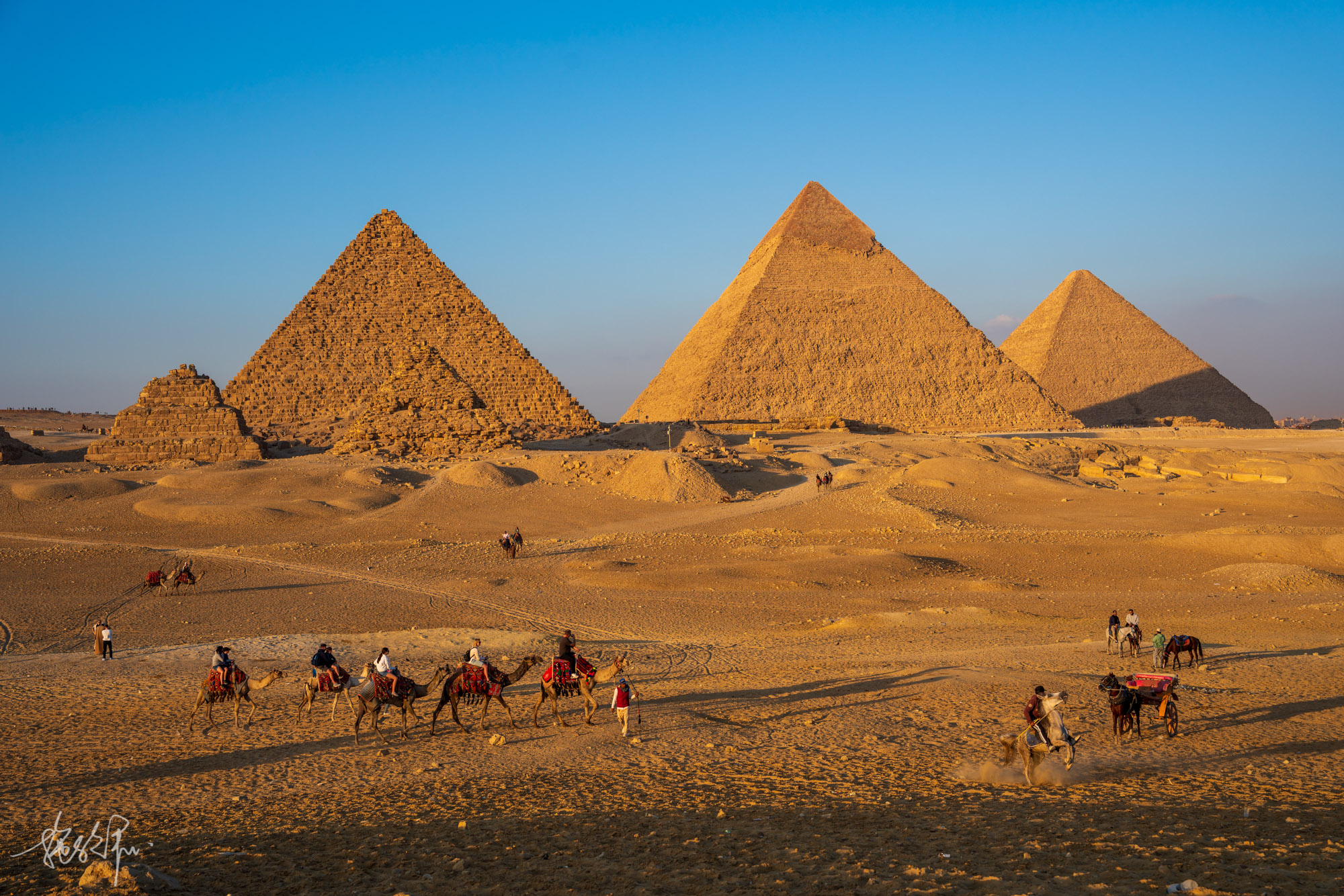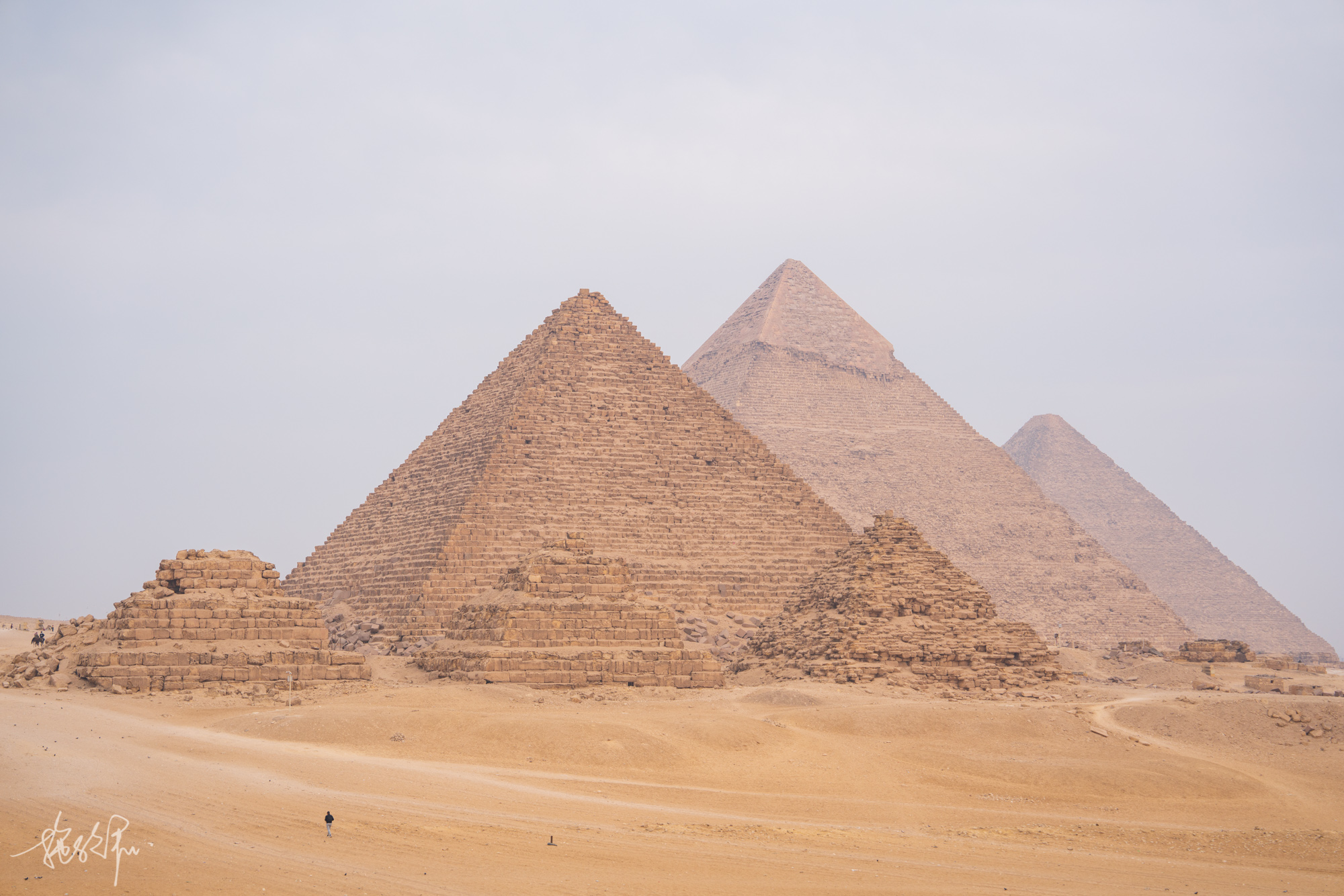 光是金字塔,这三个字就足够让我来到埃及。从小到大,最先种草在心中的目的地便是木乃伊、金字塔和法老。看完了博物馆里的木乃伊,也该来看看威严的金字塔了。从大门走到6塔观景点,把我的脚给走废了,但也值了,绝美。