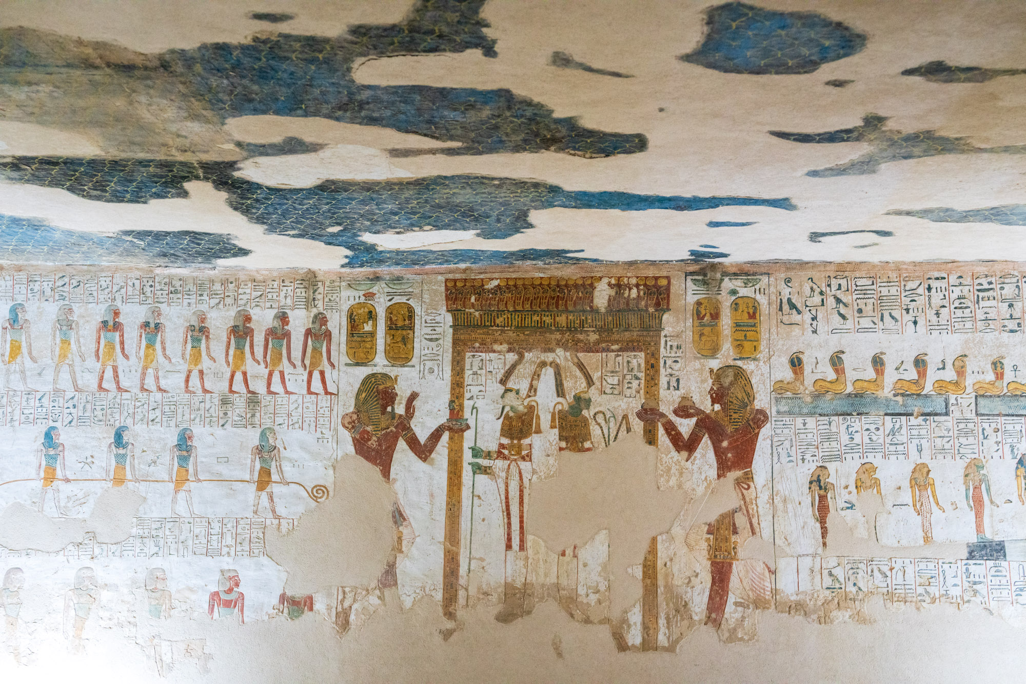我看了kv2、Kv8和kv6,最好看的还是KV2拉美西斯四世之墓,蓝色天花板墙绘真的太美啦,都这么久了依然色彩鲜艳。