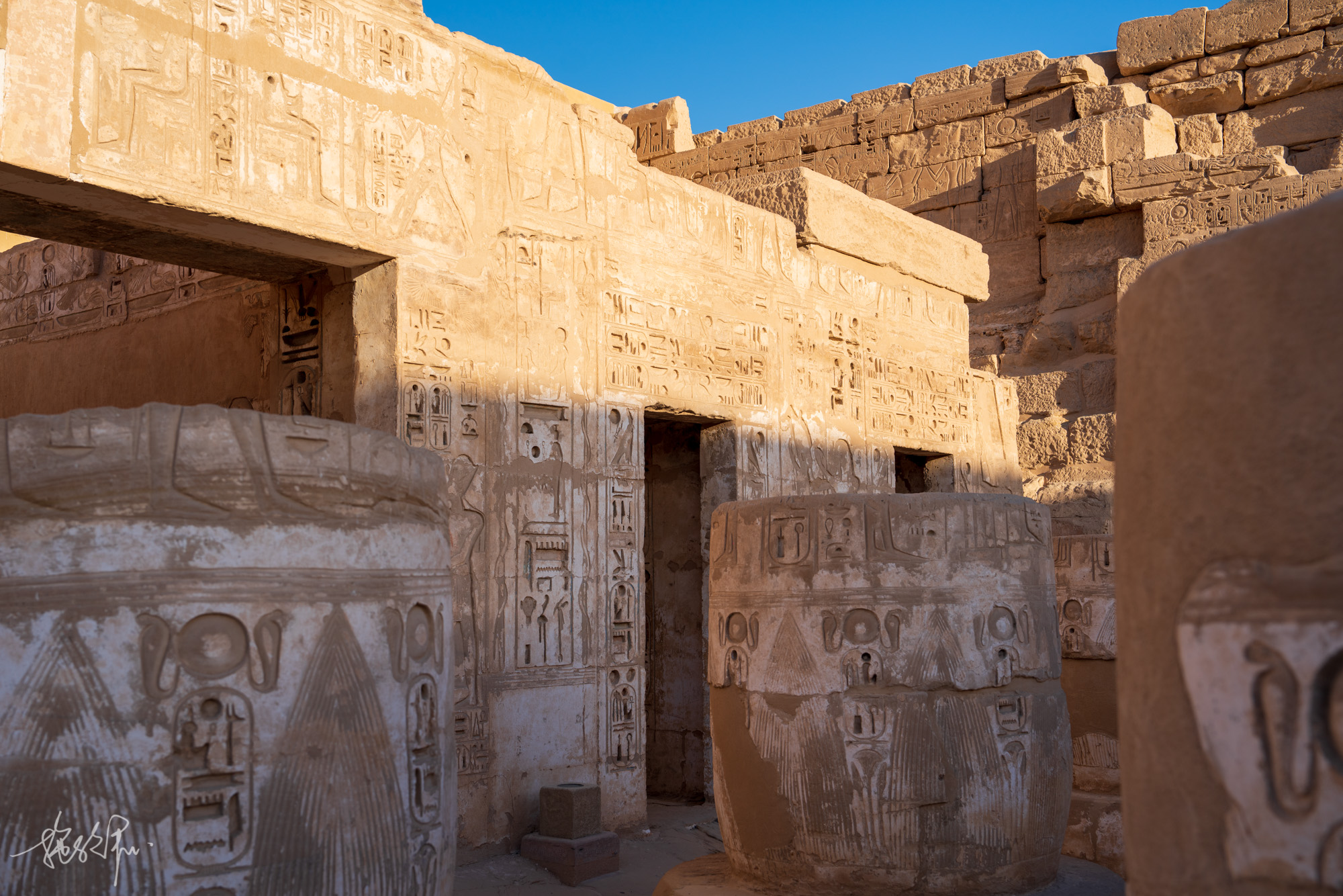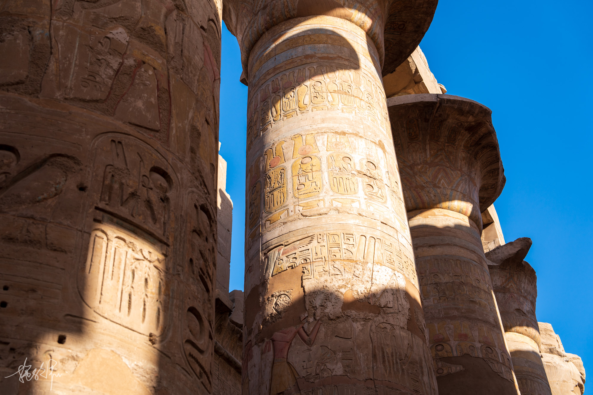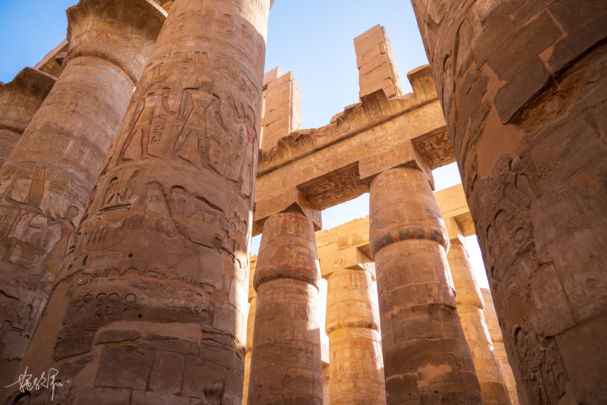 卢克索的卡纳克神庙,有着非常壮观的多柱大厅,是纸莎草形状的石柱丛,亲眼所见真的非常震撼,究竟古埃及人是怎么样才能在如此巨大的石柱上刻上这么多浮雕。